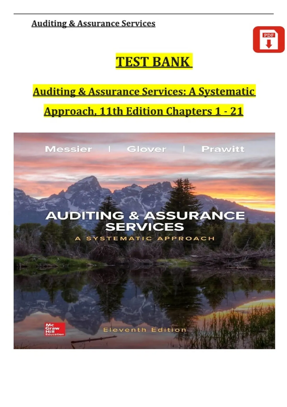 TEST BANK For Auditing & Assurance Services: A Systematic Approach, 11th Edition By William Messier Jr, Steven Glover, Verified Chapters 1 - 21, Complete Newest Versio
