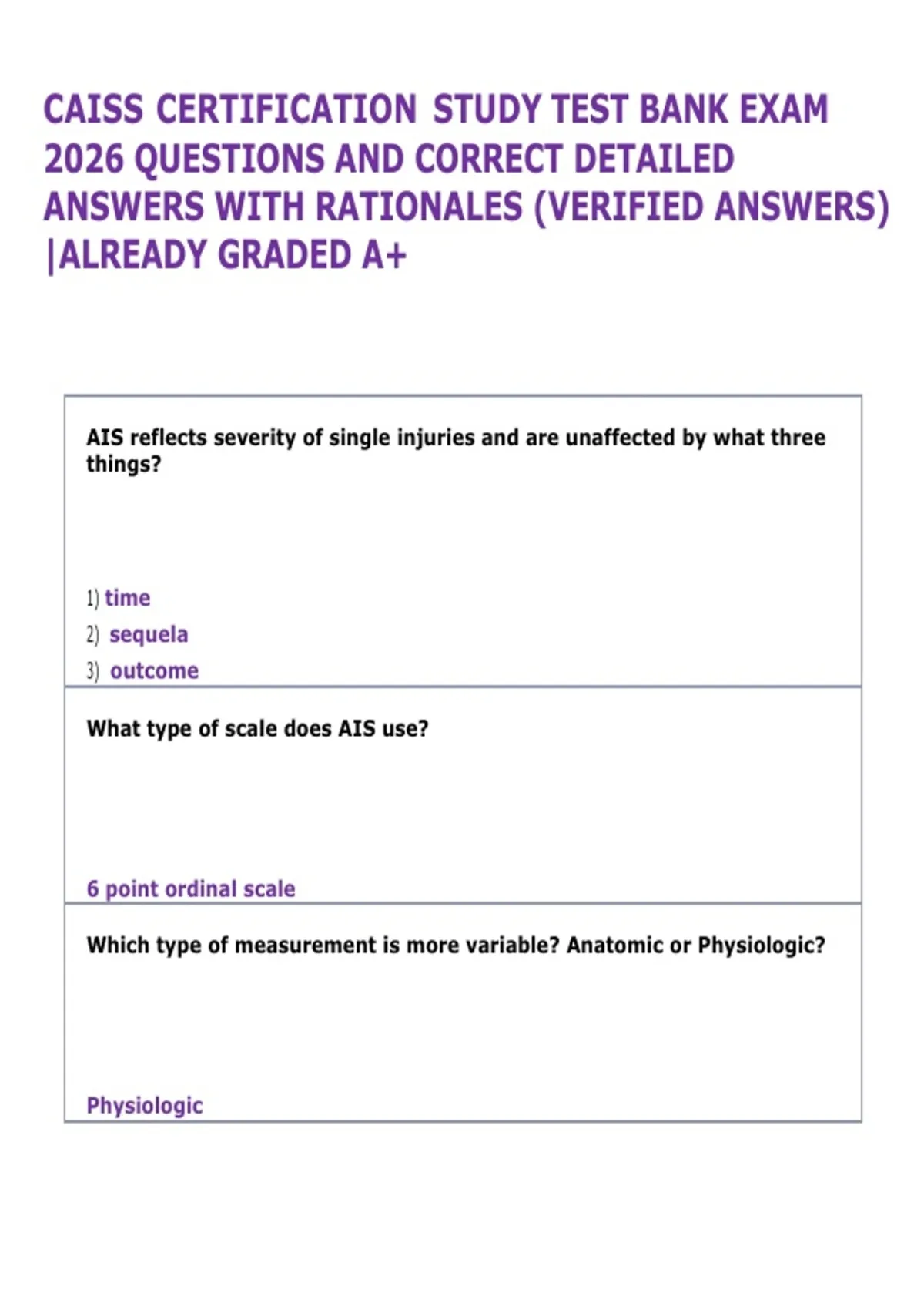 CAISS CERTIFICATION STUDY TEST BANK EXAM 2026 QUESTIONS AND CORRECT DETAILED ANSWERS WITH RATIONALES (VERIFIED ANSWERS) |ALREADY GRADED A+