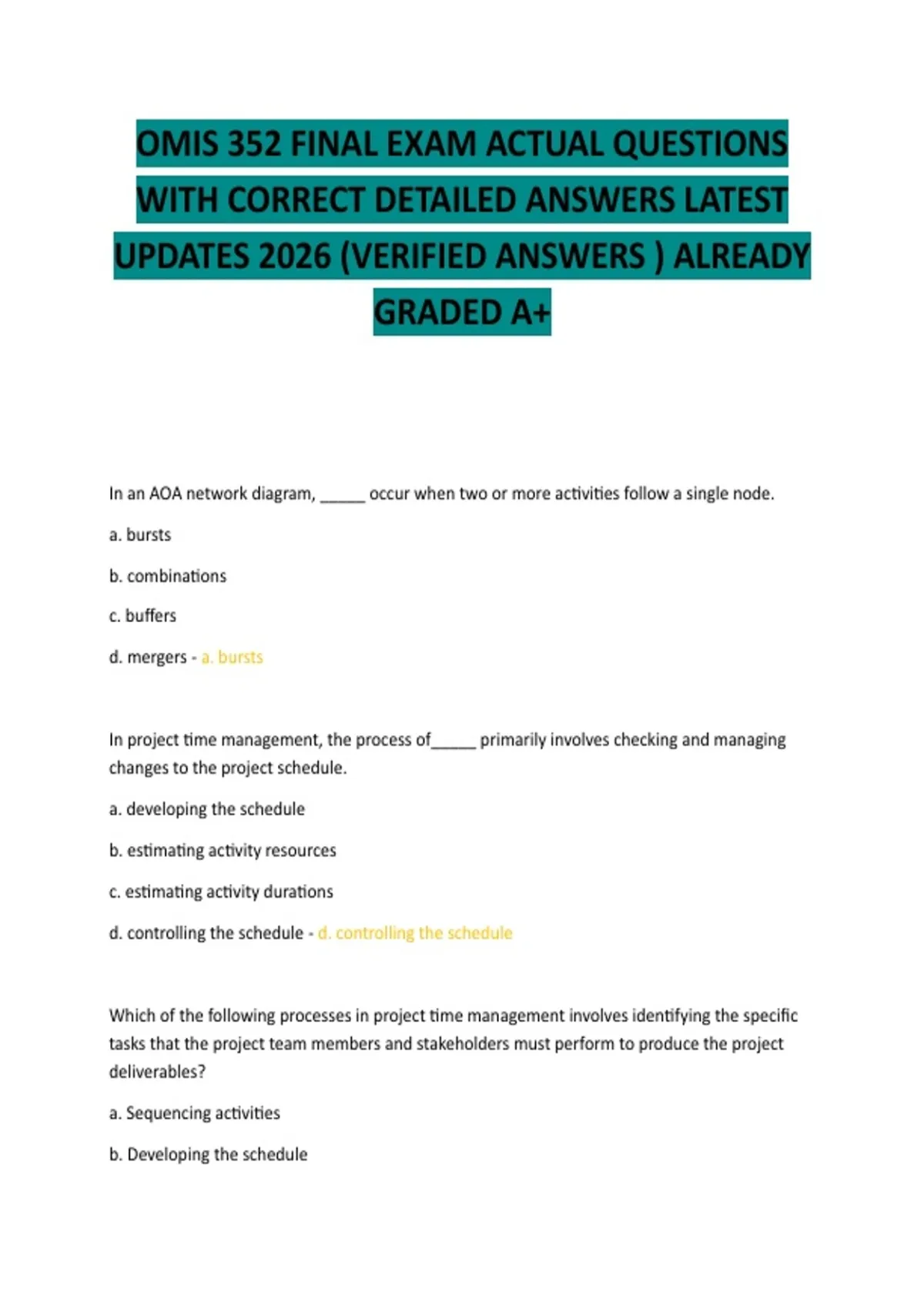 OMIS 352 FINAL EXAM ACTUAL QUESTIONS