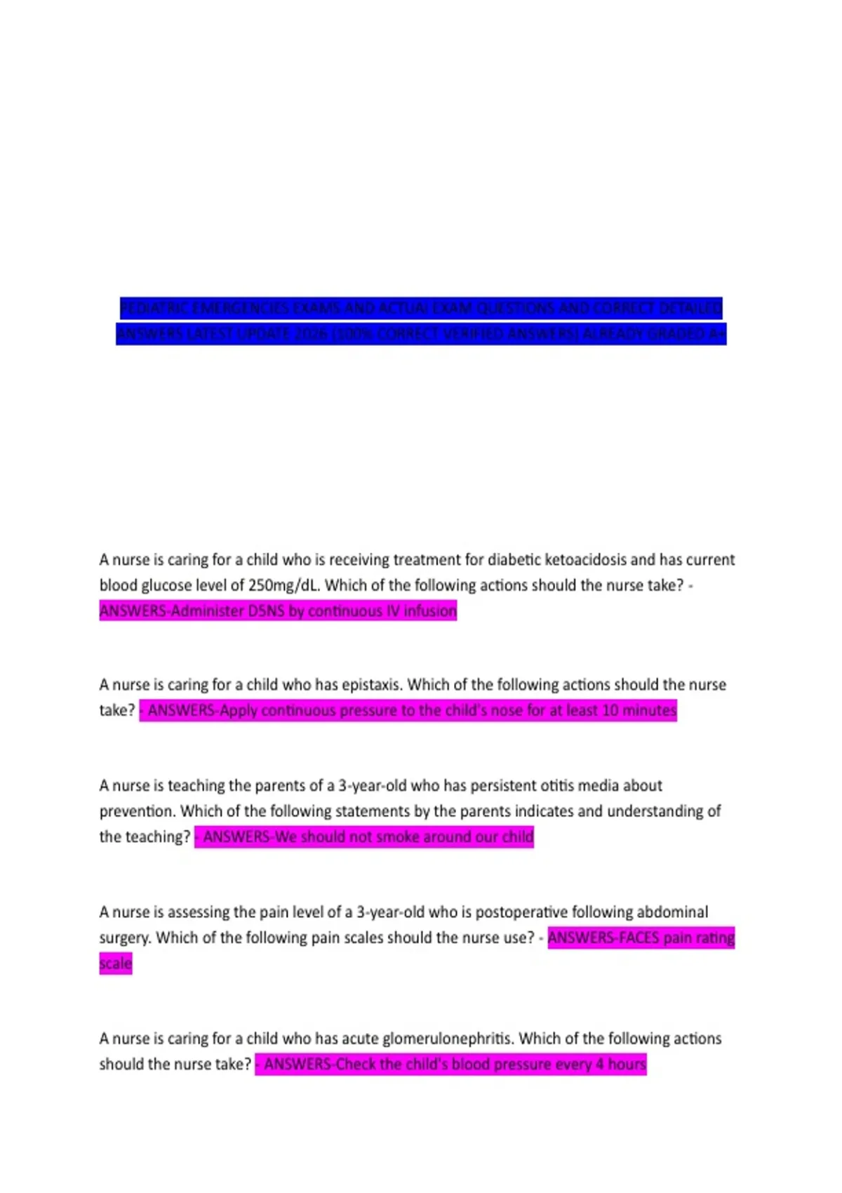 PEDIATRIC EMERGENCIES EXAMS AND ACTUAI EXAM QUESTIONS AND CORRECT DETAILED ANSWERS LATEST UPDATE 2026 (100% CORRECT VERIFIED ANSWERS) ALREADY GRADED A+