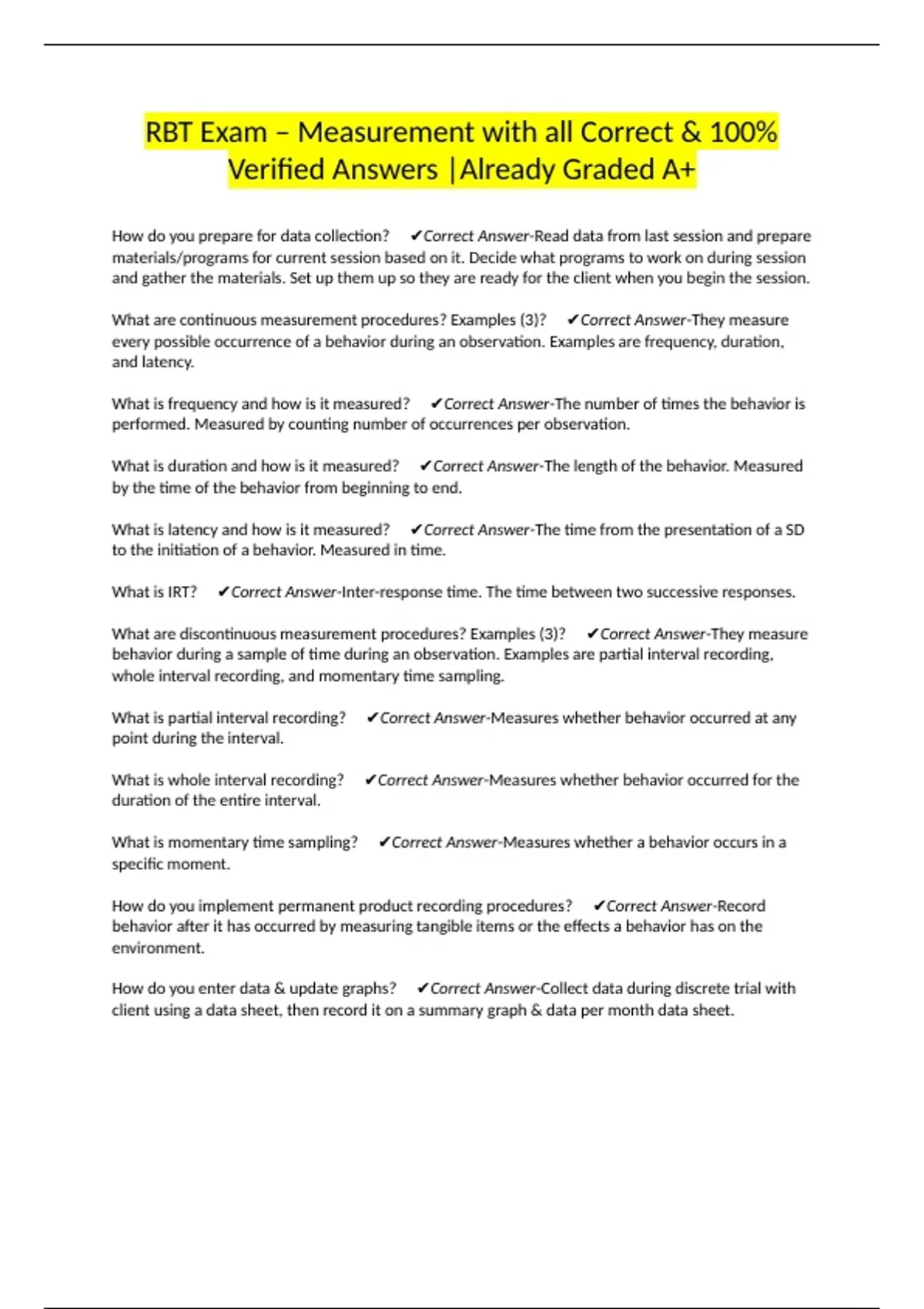 What is duration and how is it measured? ✔Correct Answer-The length of the behavior. Measured
