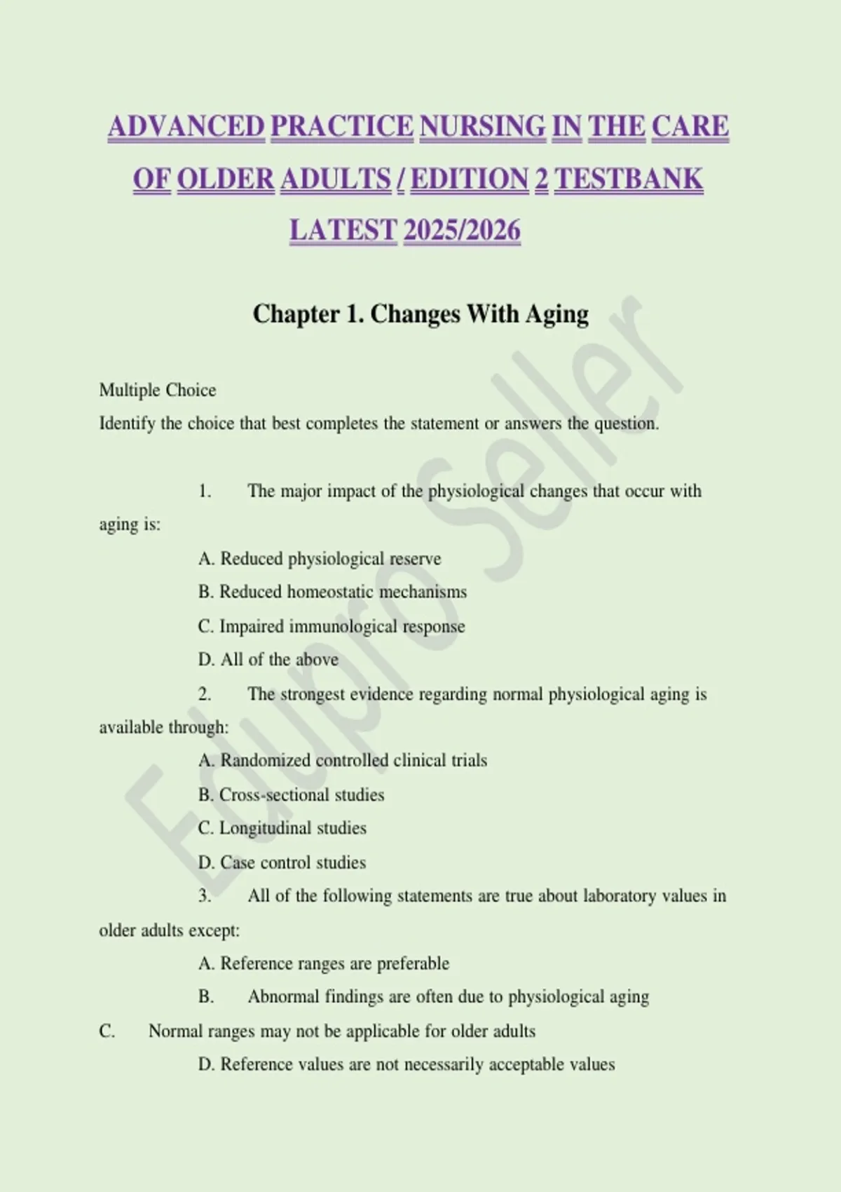 OF OLDER ADULTS / EDITION 2 TESTBANK