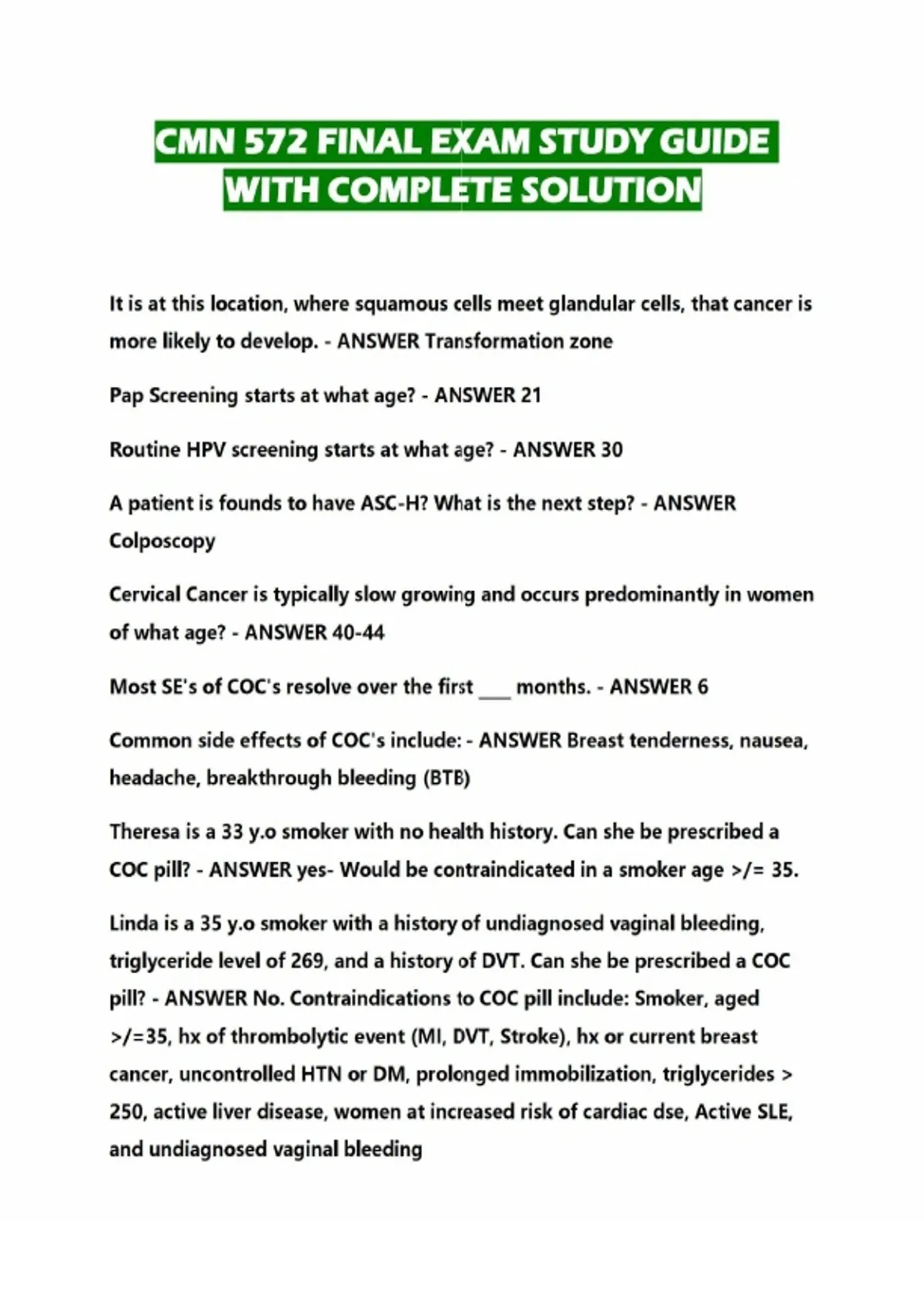 cmn 572 final exam study guide with complete solut