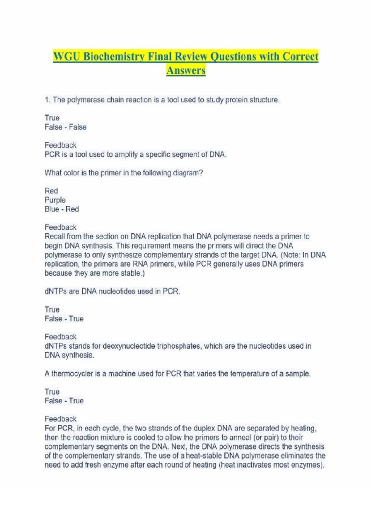 WGU Biochemistry Final Review Questions with Correct AnswersWGU Biochemistry Final Review Questions with Correct Answers