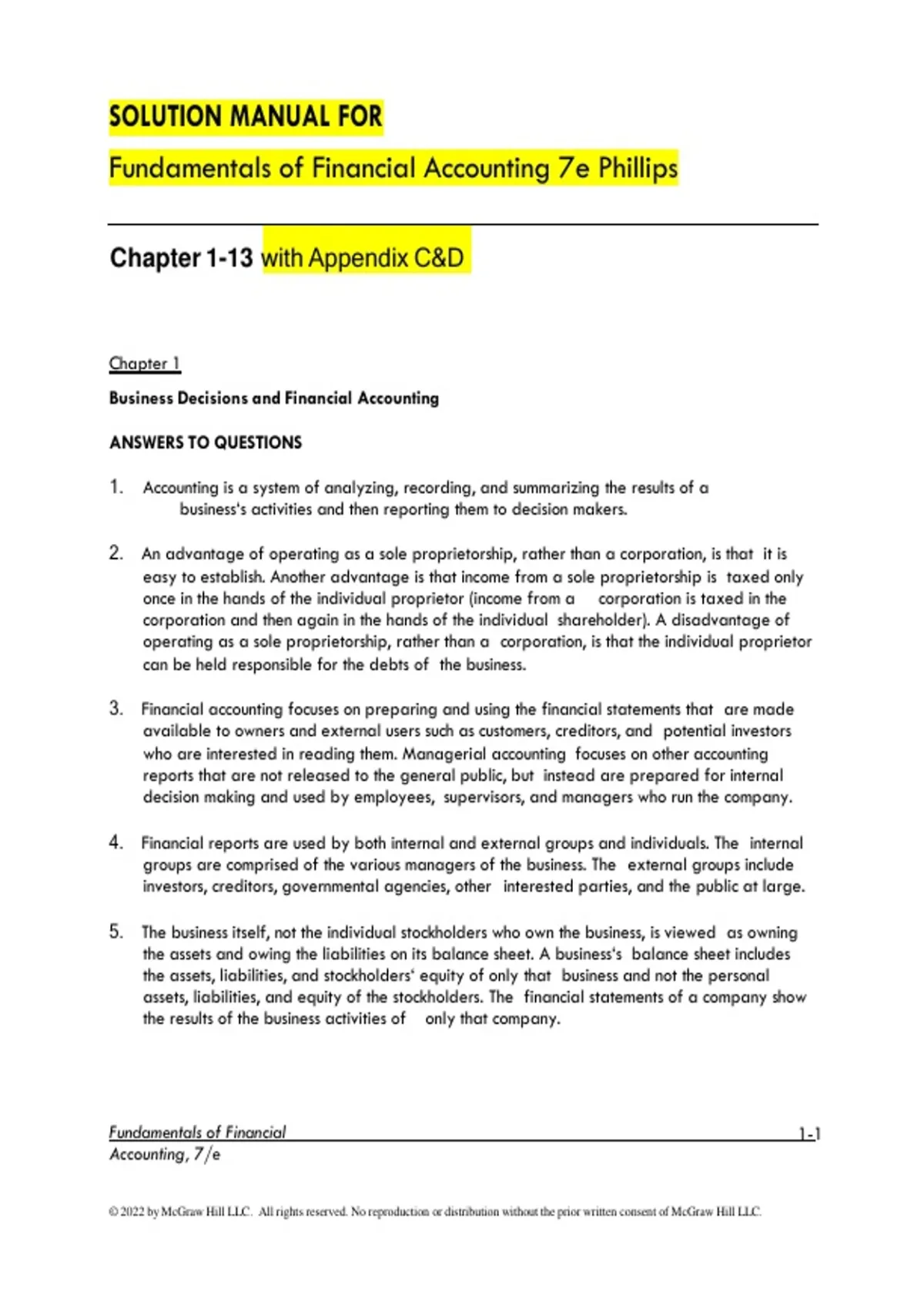 SOLUTION MANUAL FOR Fundamentals of Financial Accounting 7e Phillips