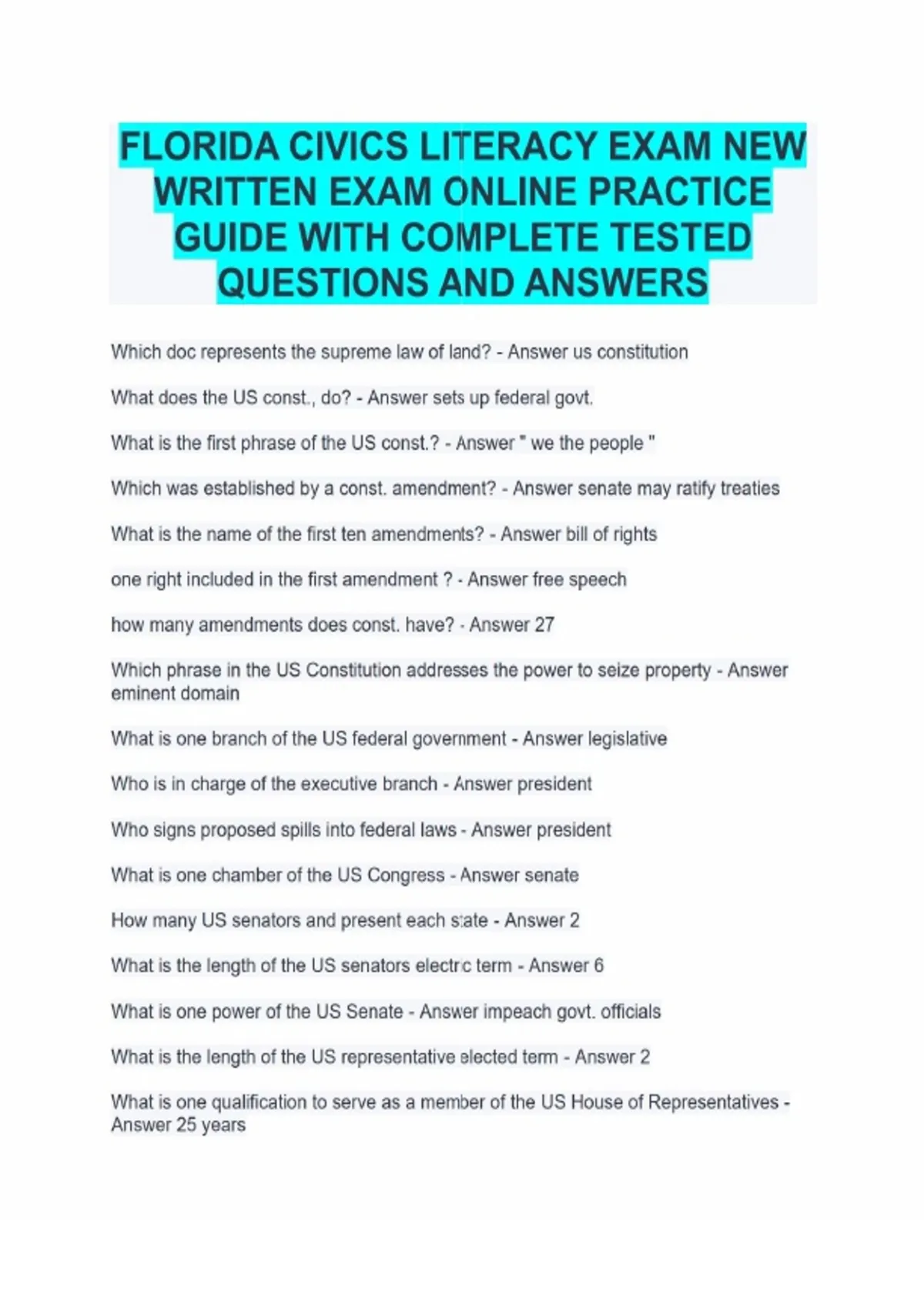 Florida civics literacy exam new written exam online practice guide with complete tested questions and answers