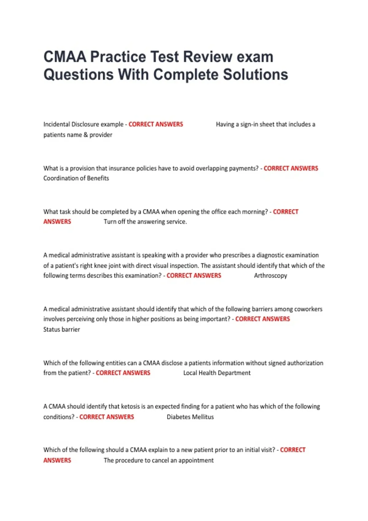 CMAA Practice Test Review exam
