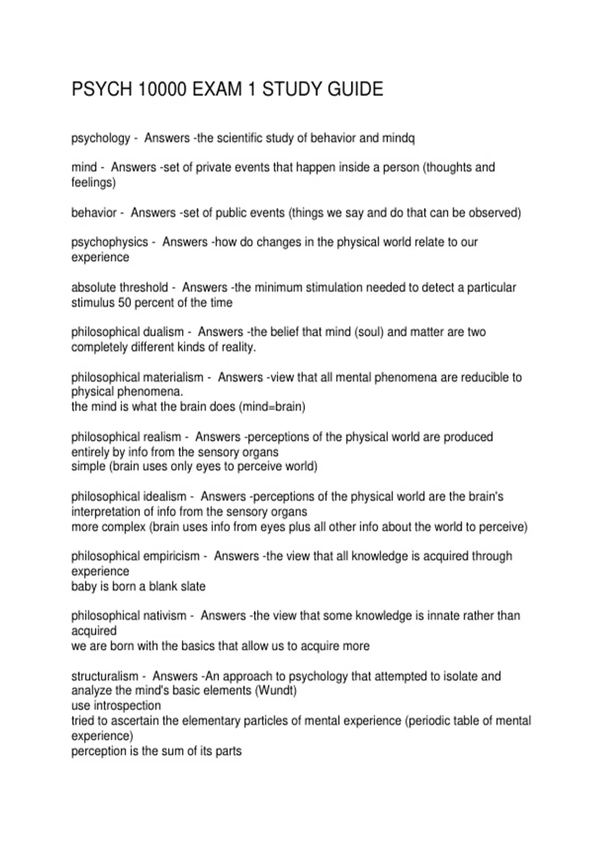 PSYCH 10000 EXAM 1 STUDY GUIDE