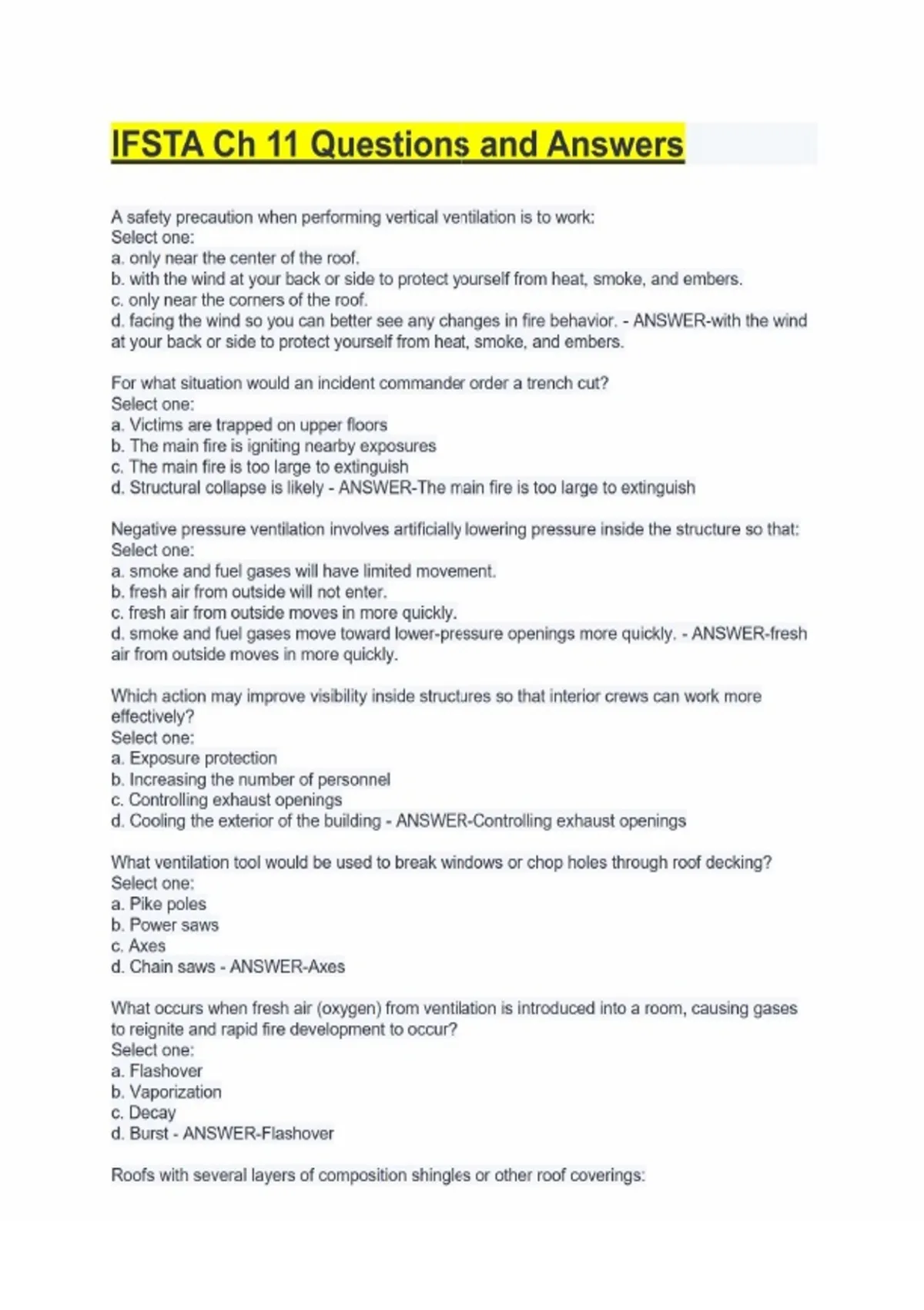ifsta ch 11 questions and answers
