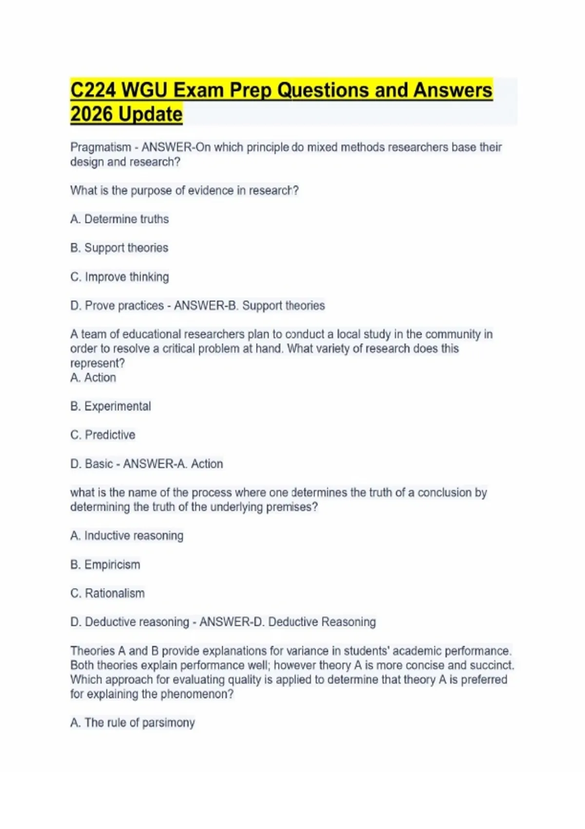 C224 WGU Exam Prep Questions and Answers 2026 Update
