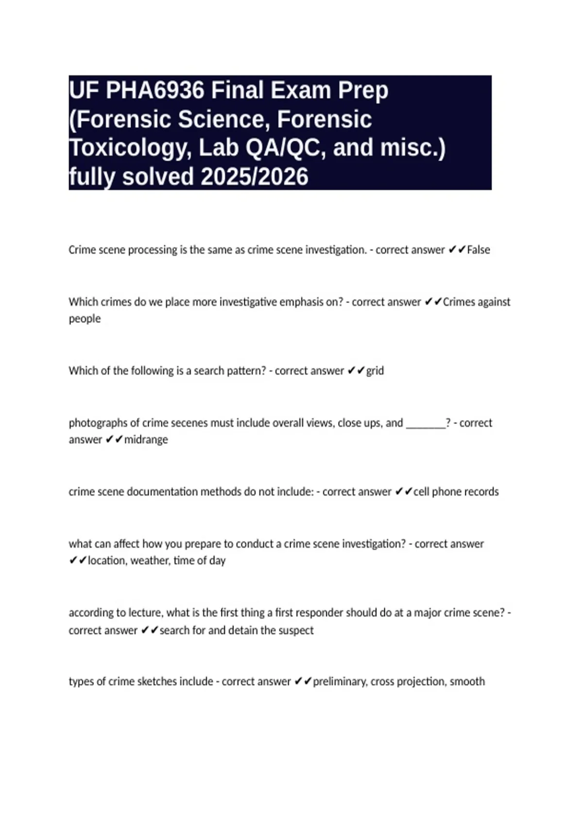 Crime scene processing is the same as crime scene investigation. - correct answer ✔✔False