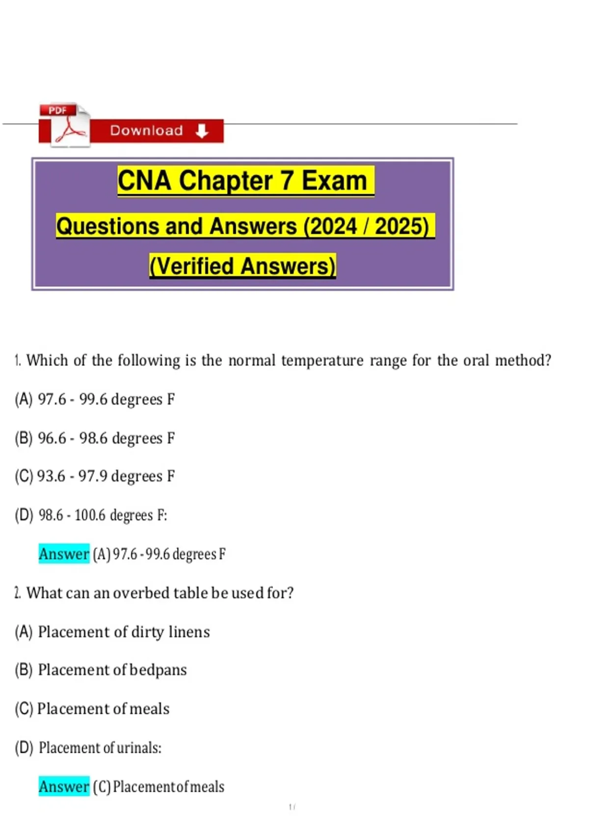 1. Which of the following is the normal temperature range for the oral method?