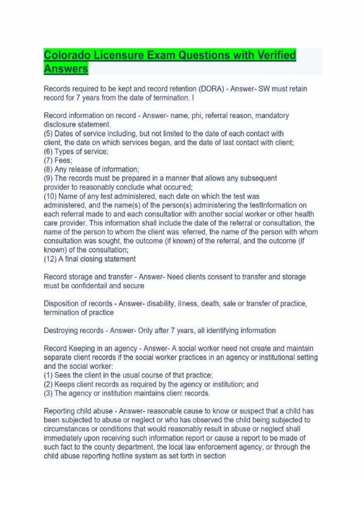 colorado licensure exam questions with verified an