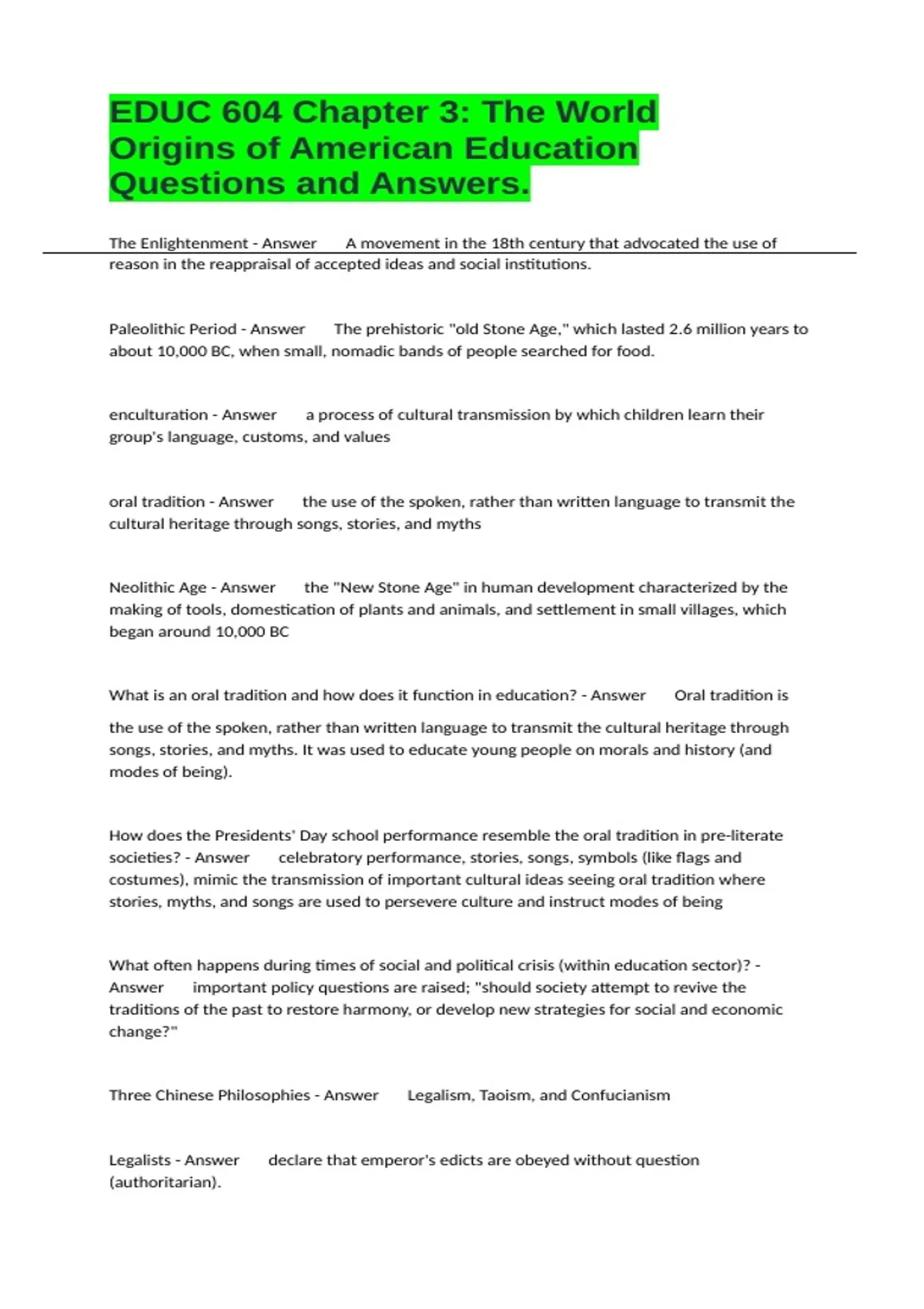 The Enlightenment - Answer A movement in the 18th century that advocated the use of