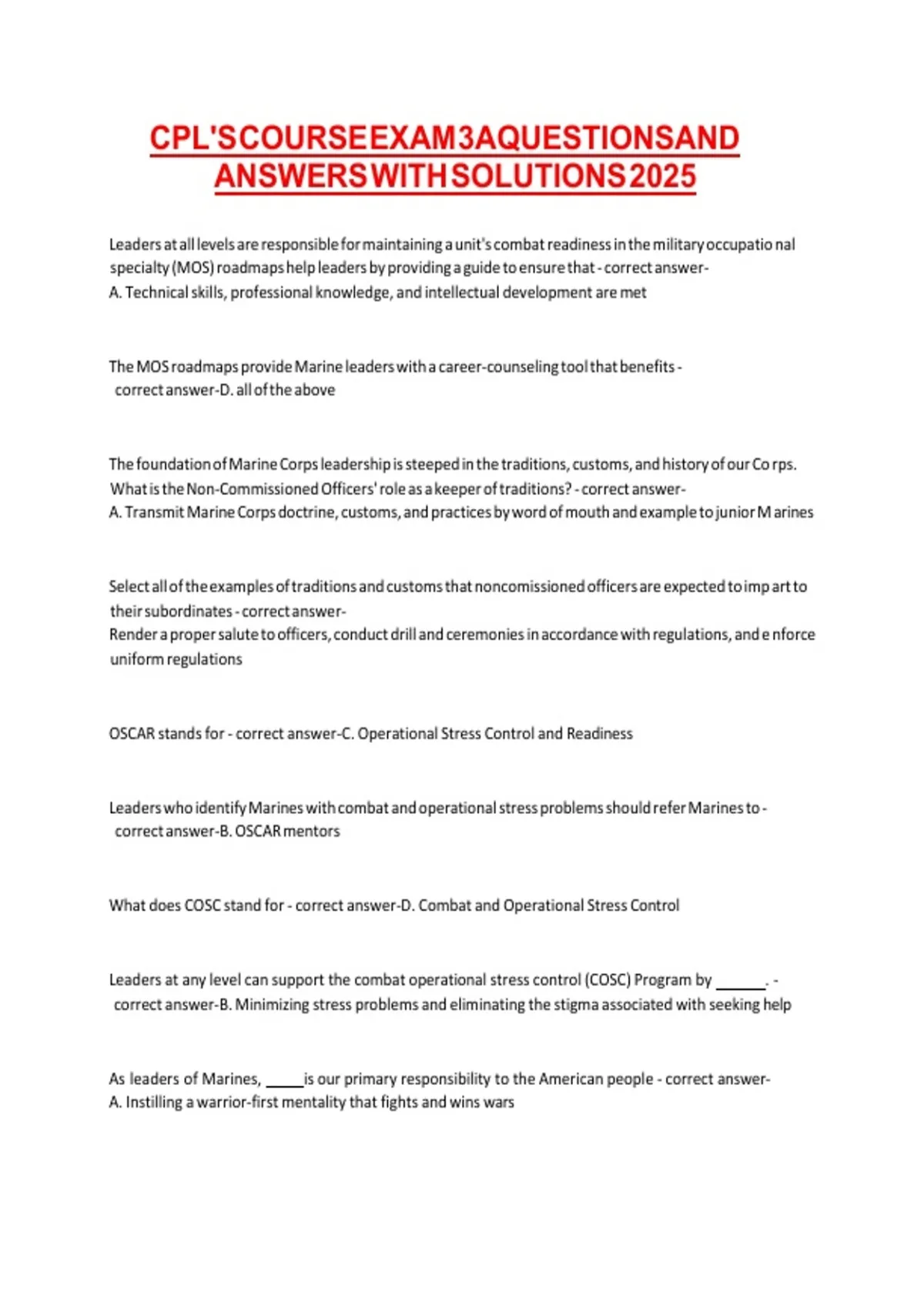 CPL'S COURSE EXAM 3AQUESTIONSAND v v v v v