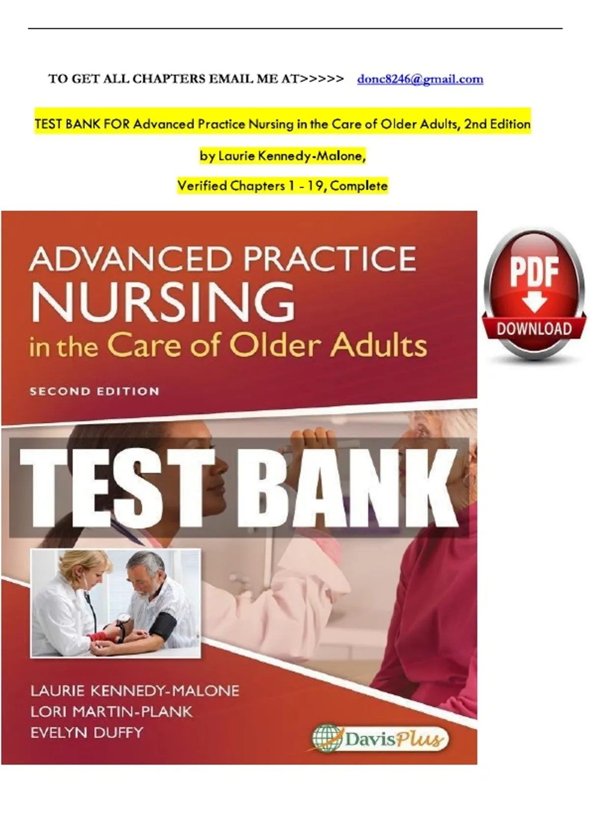 TEST BANK For Advanced Practice Nursing in the Care of Older Adults, 2nd Edition by Laurie Kennedy-Malone