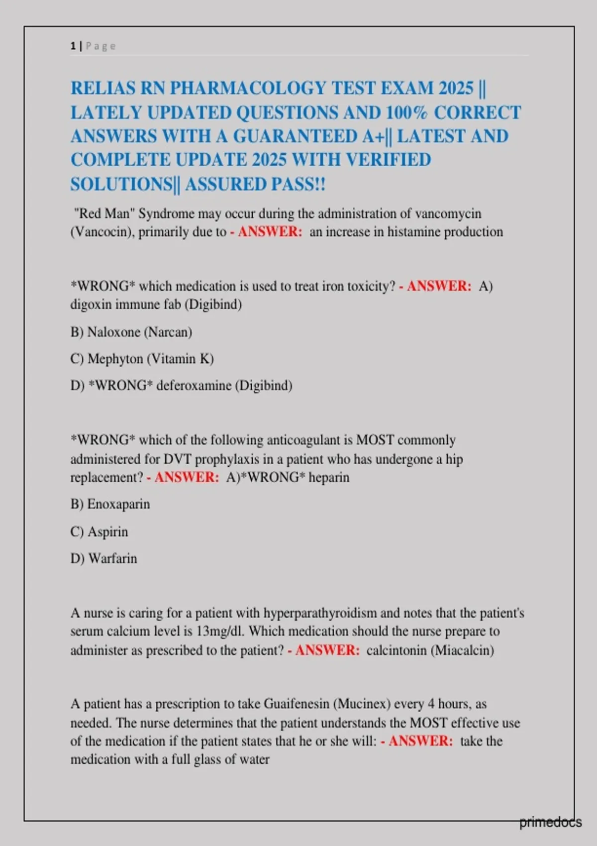 RELIAS RN PHARMACOLOGY TEST EXAM 2025 ||