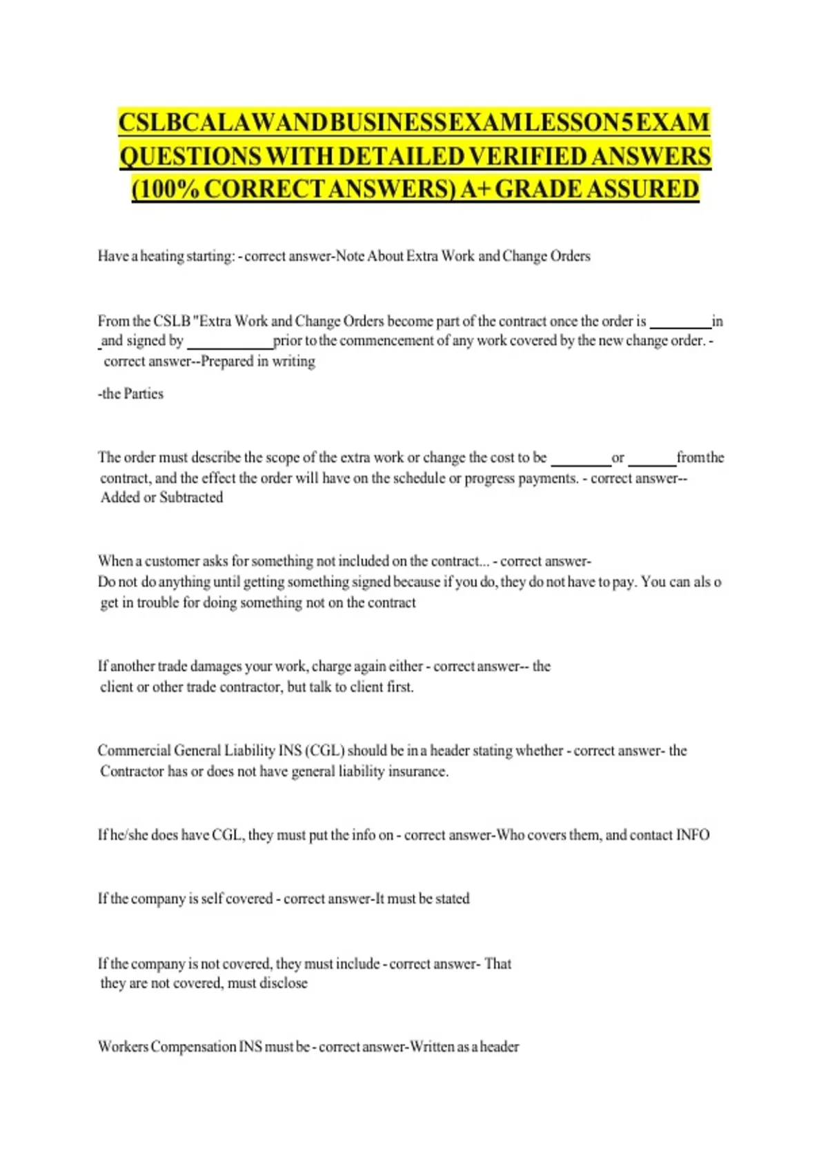 CSLBCALAWAND BUSINESS EXAM LESSON 5 EXAM v v v vv vv vv vv vv