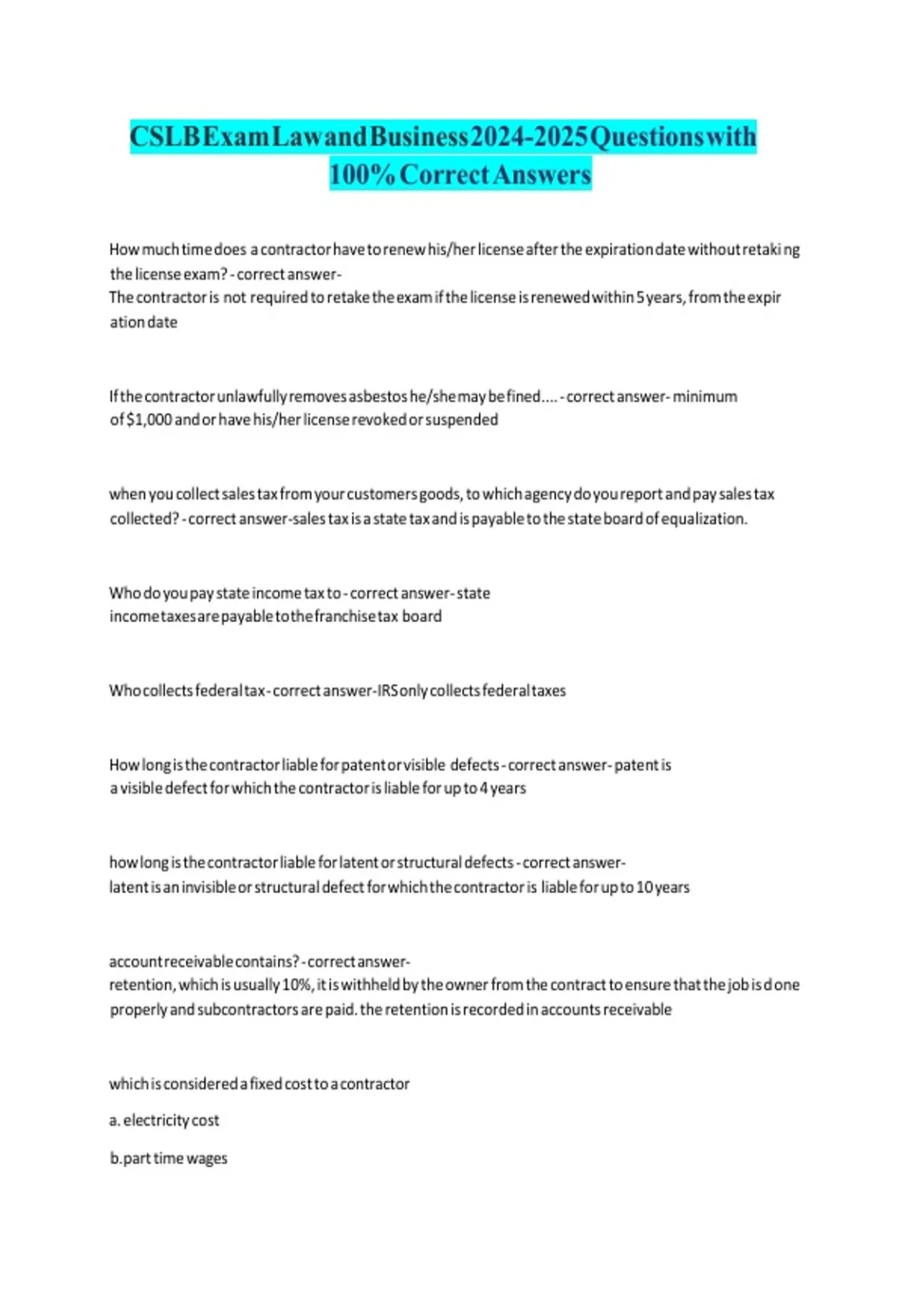 CSLB Exam Law and Business 2024-2025 Questions with v v v v v v v