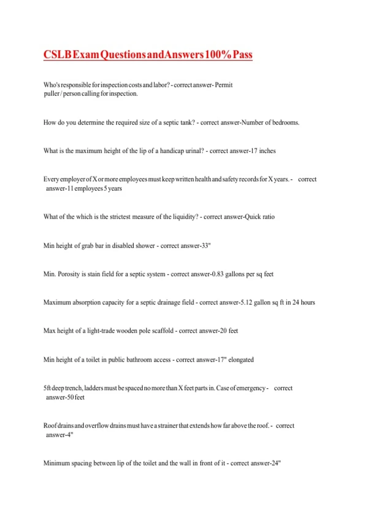 CSLB Exam Questions andAnswers 100% Pass v v v v v v