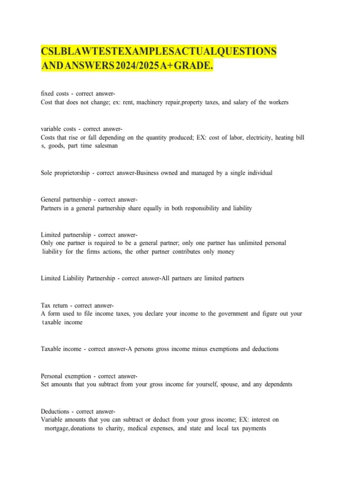 CSLBLAWTESTEXAMPLESACTUALQUESTIONS v v v v v