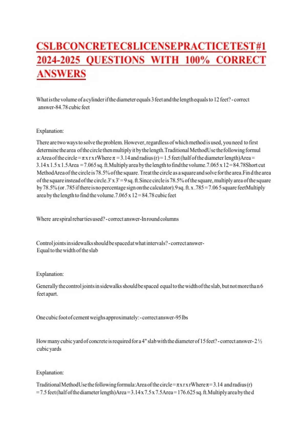CSLB CONCRETE C8 LICENSE PRACTICETEST #1 v v v v v v