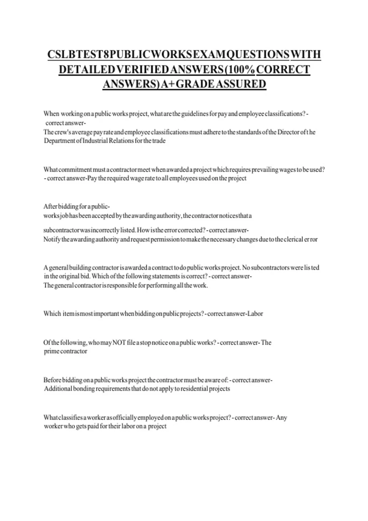CSLBTEST8 PUBLICWORKS EXAM QUESTIONS WITH v v v v v v v