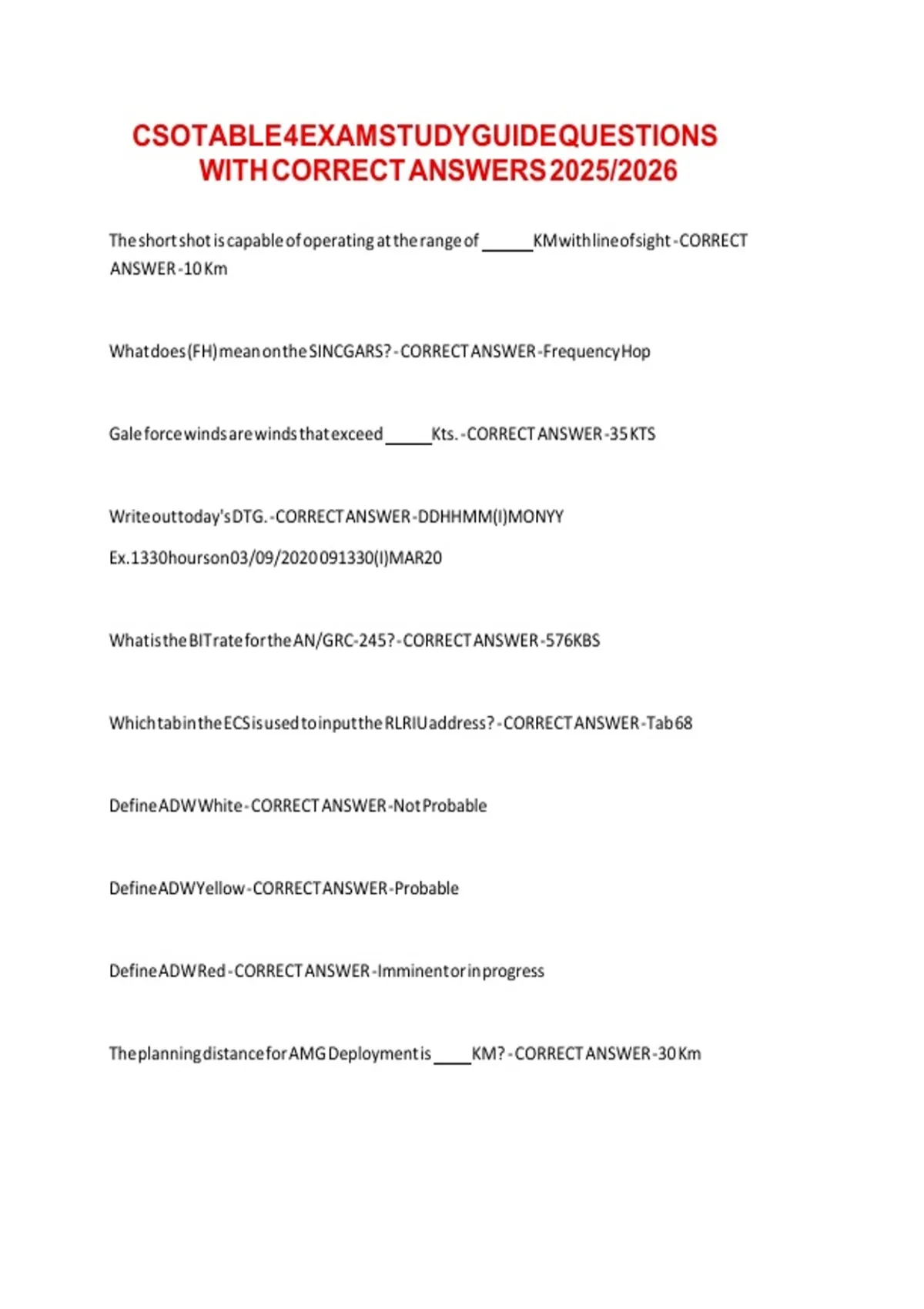 CSOTABLE 4 EXAMSTUDYGUIDE QUESTIONS v v v v v v