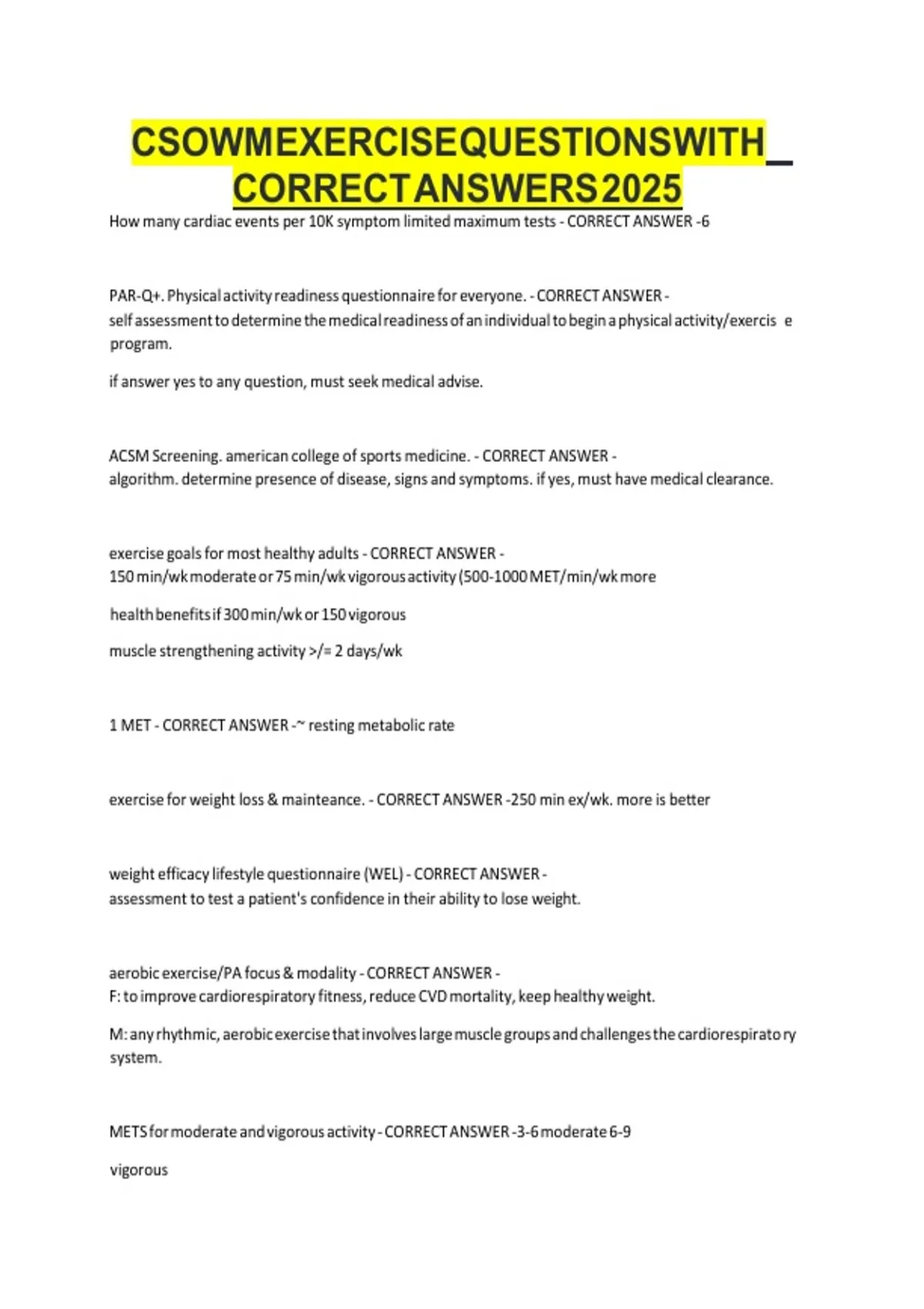 CSOWM EXERCISE QUESTIONS WITH CORRECT ANSWERS