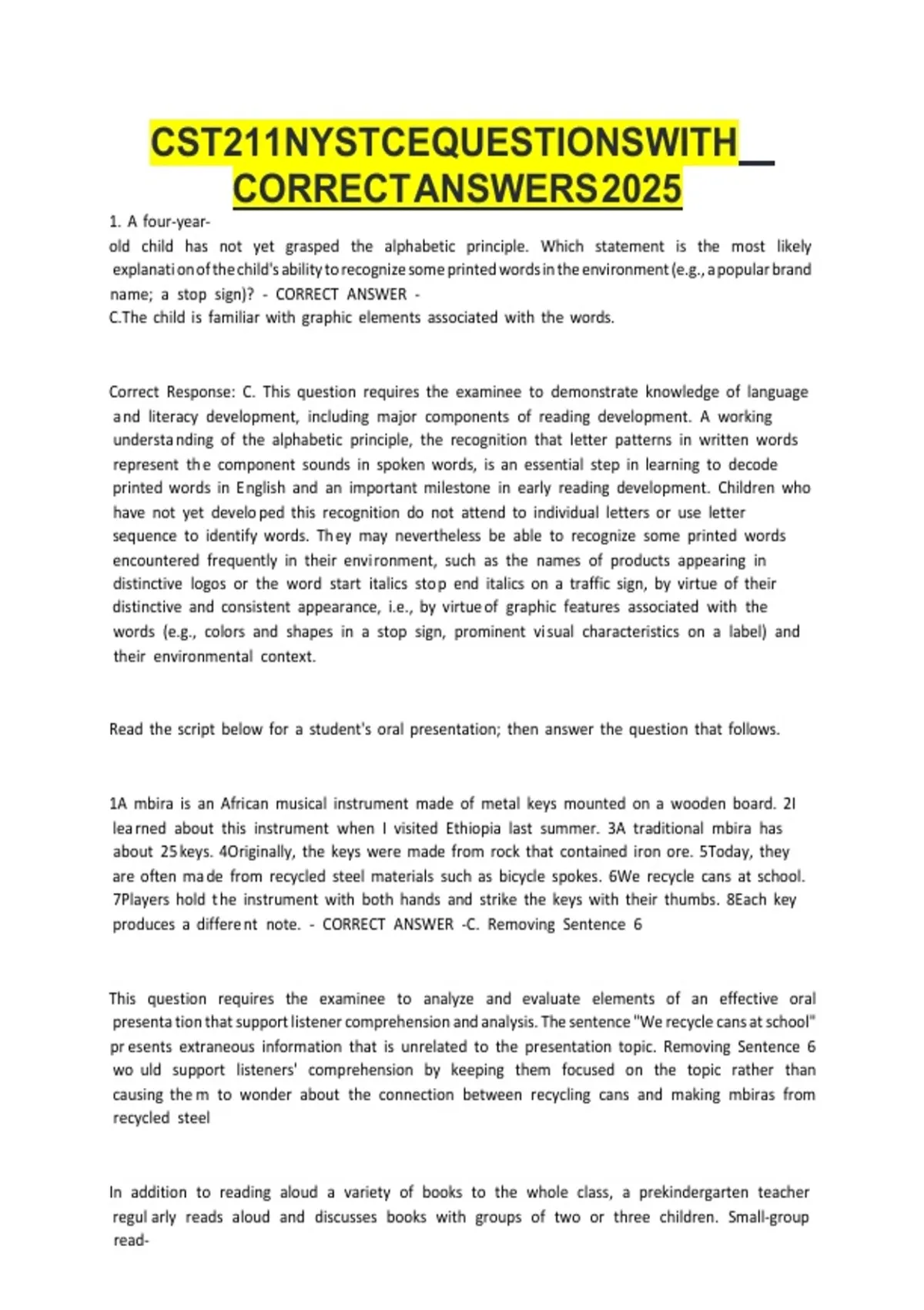 CST 211 NYSTCE QUESTIONS WITH CORRECT ANSWERS