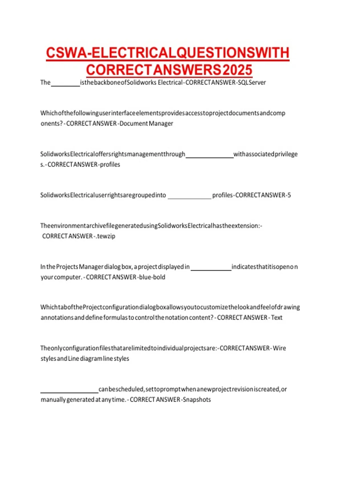 CSWA-ELECTRICAL QUESTIONS WITH CORRECT ANSWERS