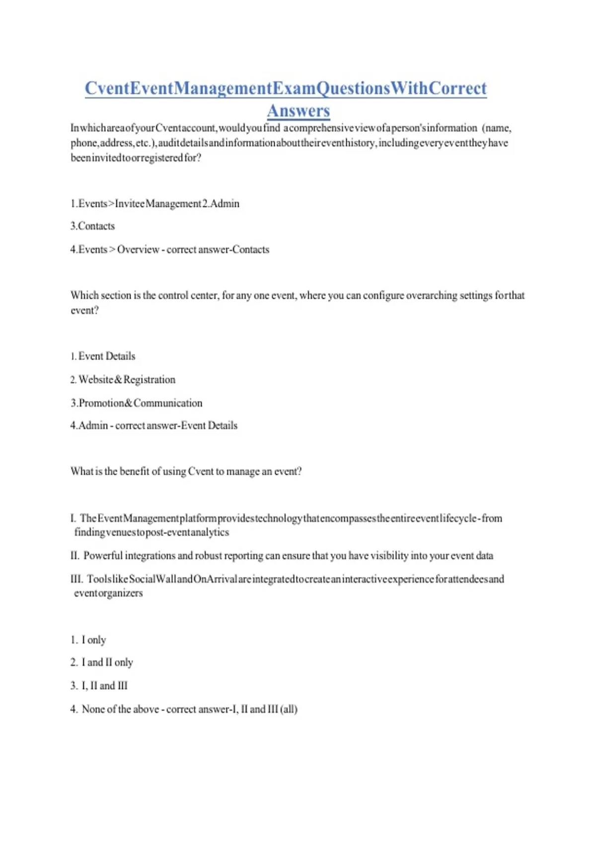 CventEventManagementExamQuestionsWithCorrect b b b b b b