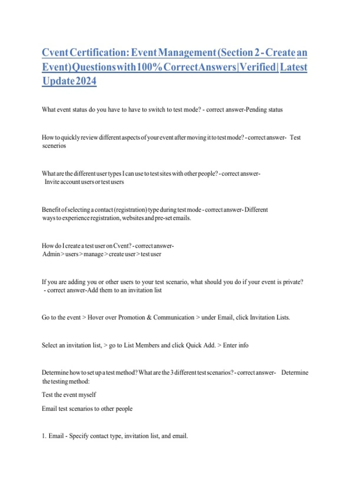 Cvent Certification. ALL ANSWERED