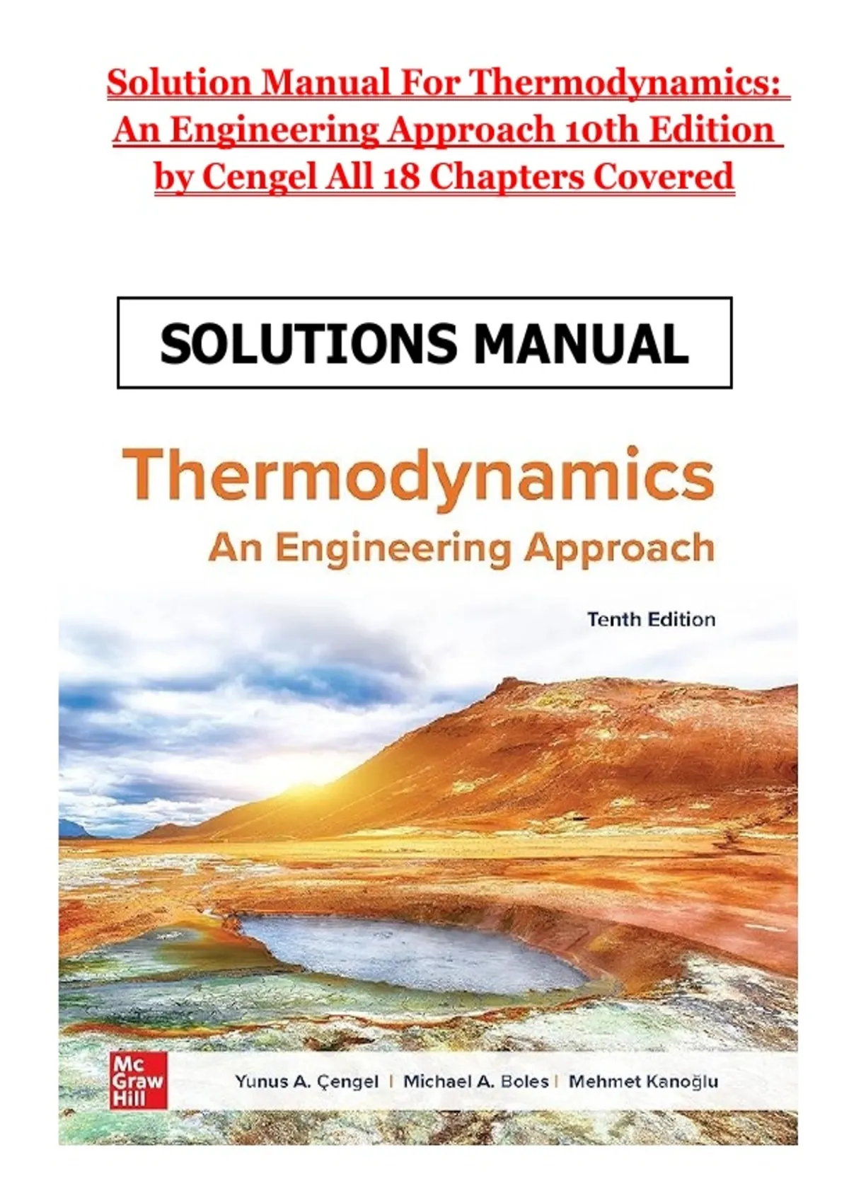 Solution Manual for Thermodynamics: An Engineering Approach 10th Edition by Cengel | All 18 Chapters Covered Instant Download This solution manual for *Thermodynamics: An Engineering Approach*, 10th Edition by Yunus A. Cengel, offers detailed step-by-step solutions to problems presented in the textbook. Designed for engineering students and professionals, this manual enhances understanding of key thermodynamics concepts, including energy analysis, properties of pure substances, the first and second laws of thermodynamics, entropy, and power and refrigeration cycles. Ideal for improving problem-solving skills and exam preparation, this resource supports academic success in mechanical, chemical, and aerospace engineering courses. Thermodynamics solution manual, Thermodynamics Cengel 10th edition solutions, engineering thermodynamics solutions, thermodynamics problems solved, engineering approach thermodynamics manual, thermodynamics textbook solutions, mechanical engineering thermodynamics, thermodynamics exam preparation, energy systems solutions #Thermodynamics #EngineeringThermodynamics #CengelThermodynamics #ThermodynamicsSolutions #EngineeringEducation #MechanicalEngineering #ThermodynamicsManual #AcademicResources Solution Manual For Thermodynamics An Engineering Approach 10th Edition by Cengel All 18 chapters covered ISBN:9789813157873 GET IT 100% ACCURATE!(Graded A+) complete version Solution Manual For Thermodynamics An Engineering Approach 10th Edition by Cengel All 18 chapters covered ISBN:9789813157873 GET IT 100% ACCURATE!(Graded A+) complete version