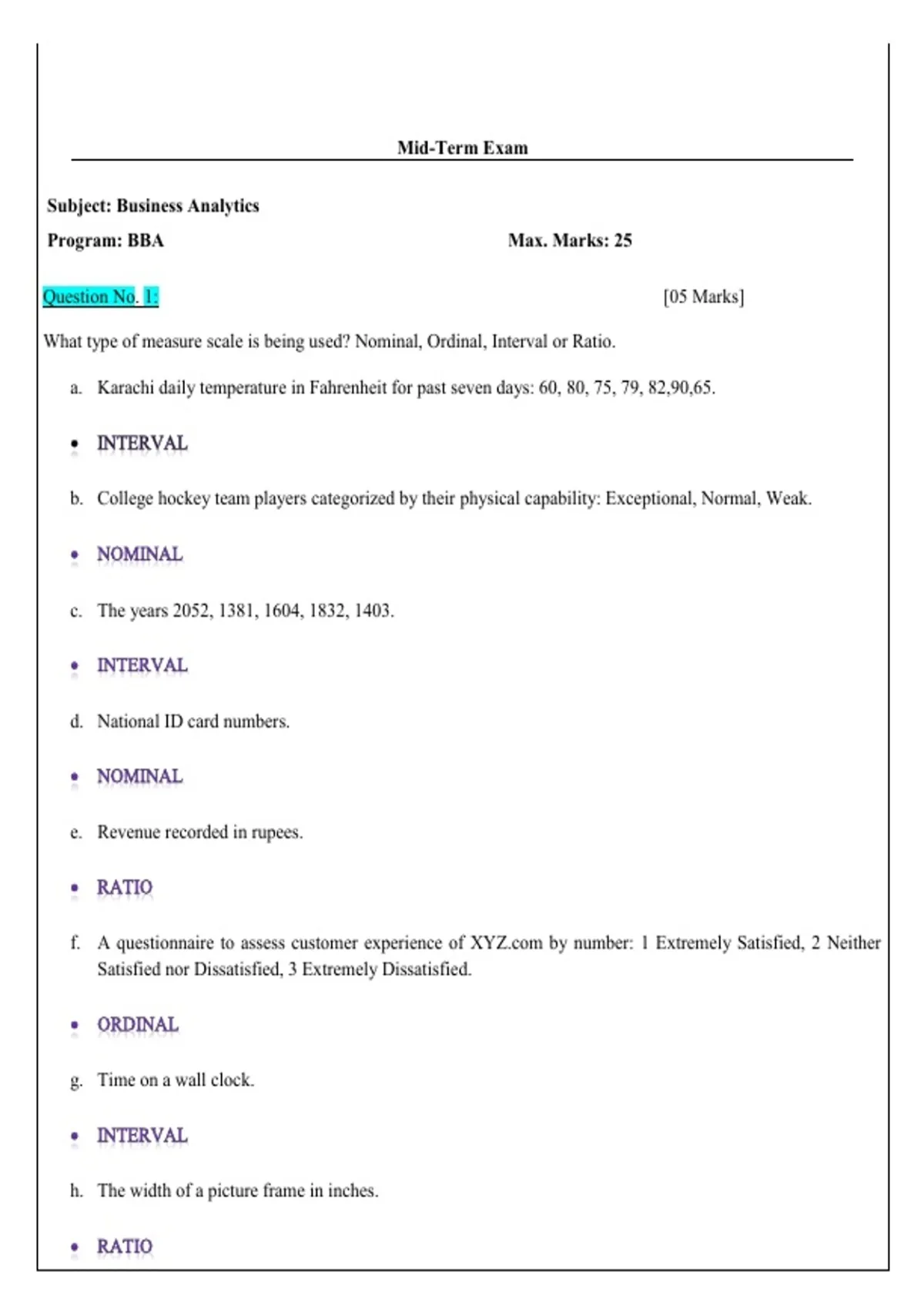 Business Analytics Exam Midterm Paper Answers – Practice Questions, Solutions and Exam Review