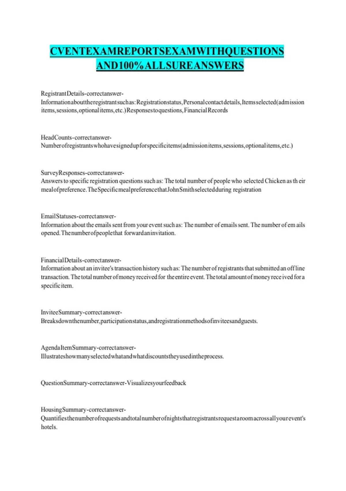 CVENT EXAM REPORTS EXAM WITH QUESTIONS AND 100- ALL SURE ANSWERS