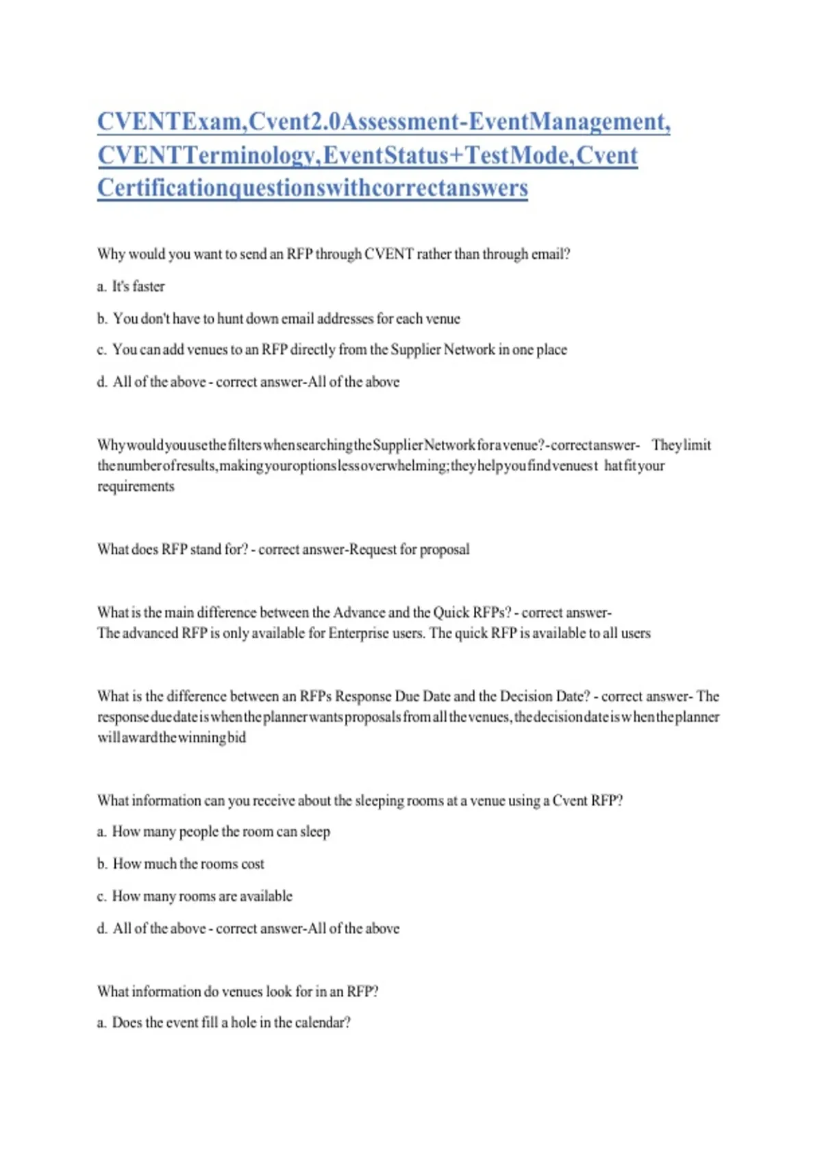 CVENTExam,Cvent2.0Assessment-EventManagement, b b b b b b b