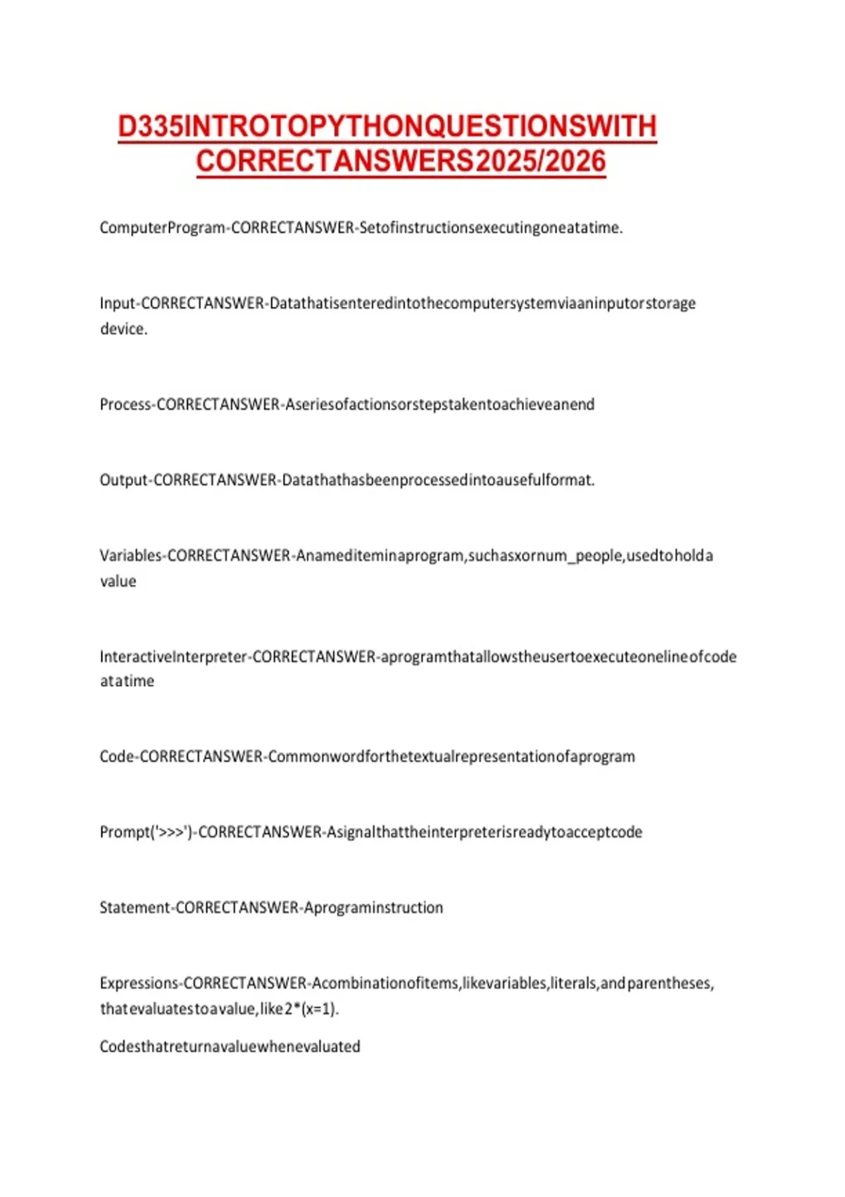 D335 INTRO TO PYTHON QUESTIONS WITH CORRECT ANSWERS