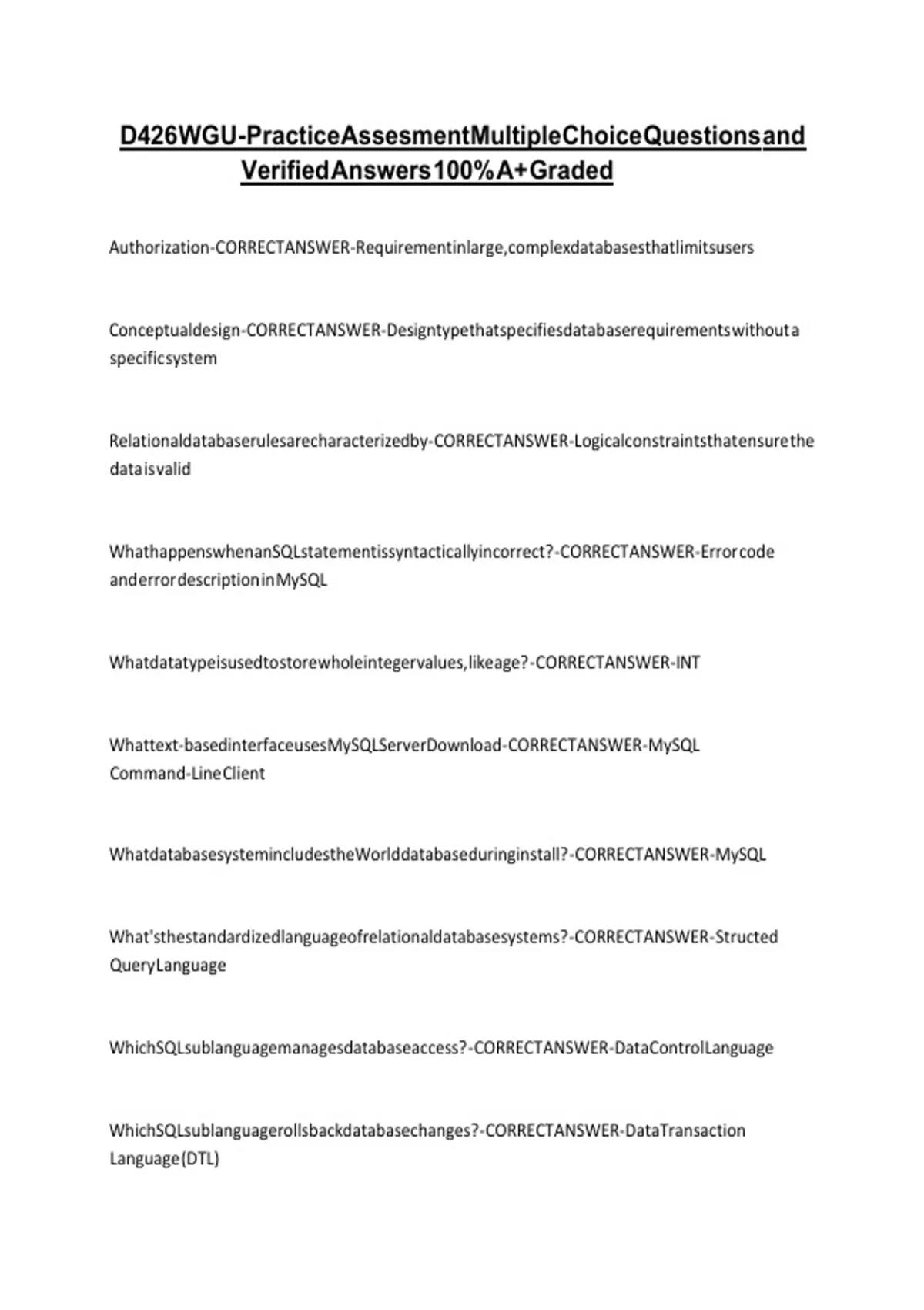 D426 WGU-PracticeAssesment MultipleChoice Questions and