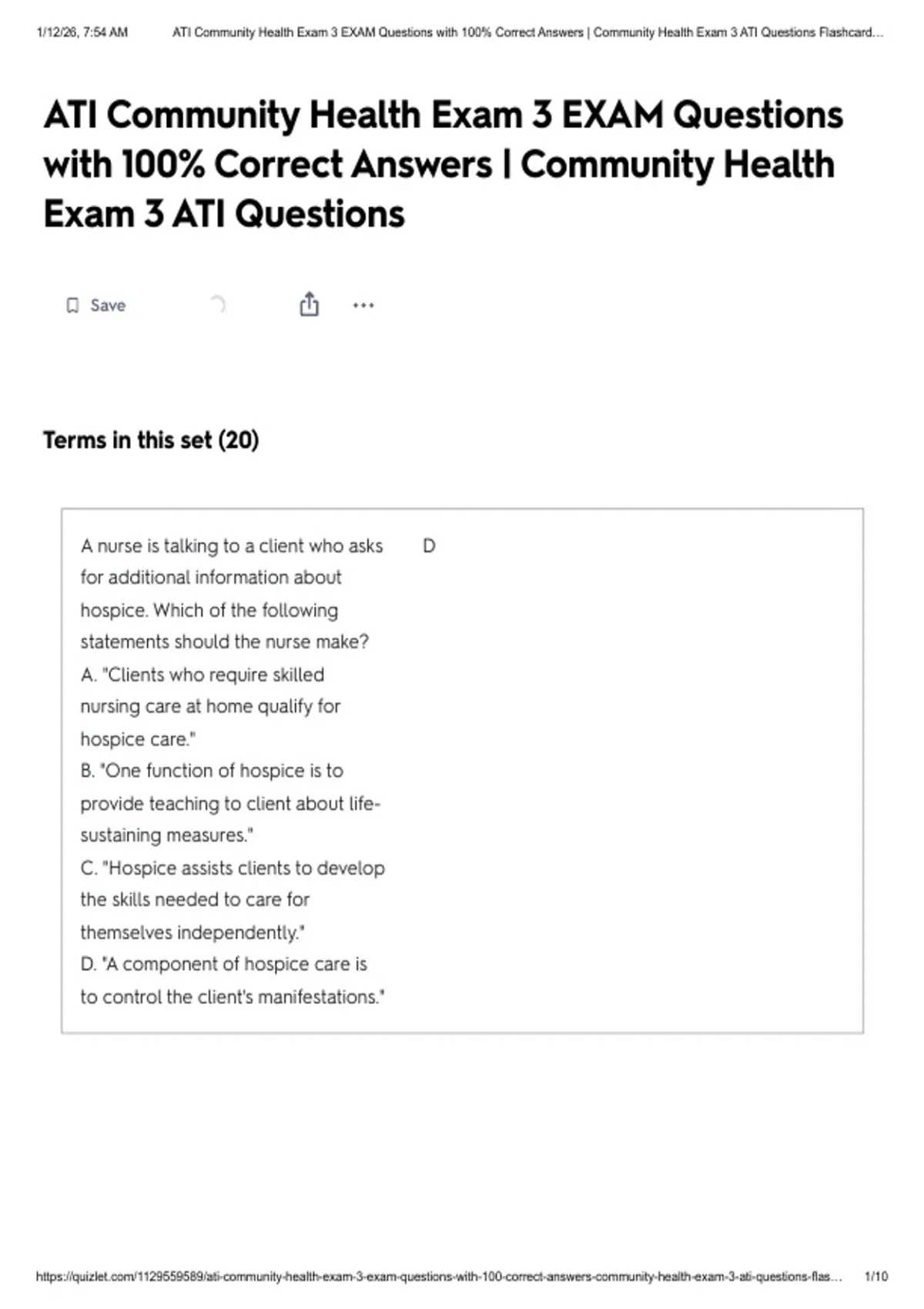 , 1/12/26, 7:54 AM ATI Community Health Exam 3 EXAM Questions with 100% Correct Answers | Community Health Exam 3 ATI Questions Flashcard…