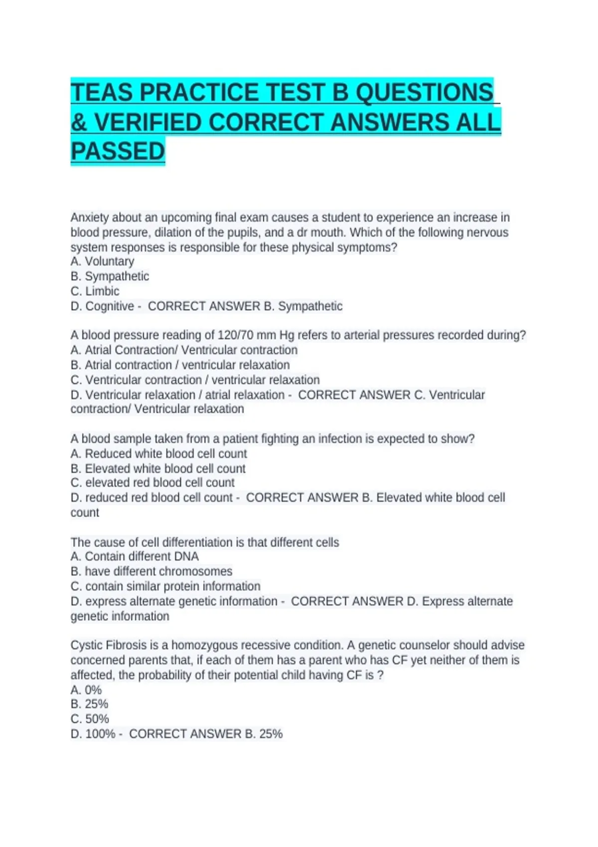D. 100% - CORRECT ANSWER B. 25%