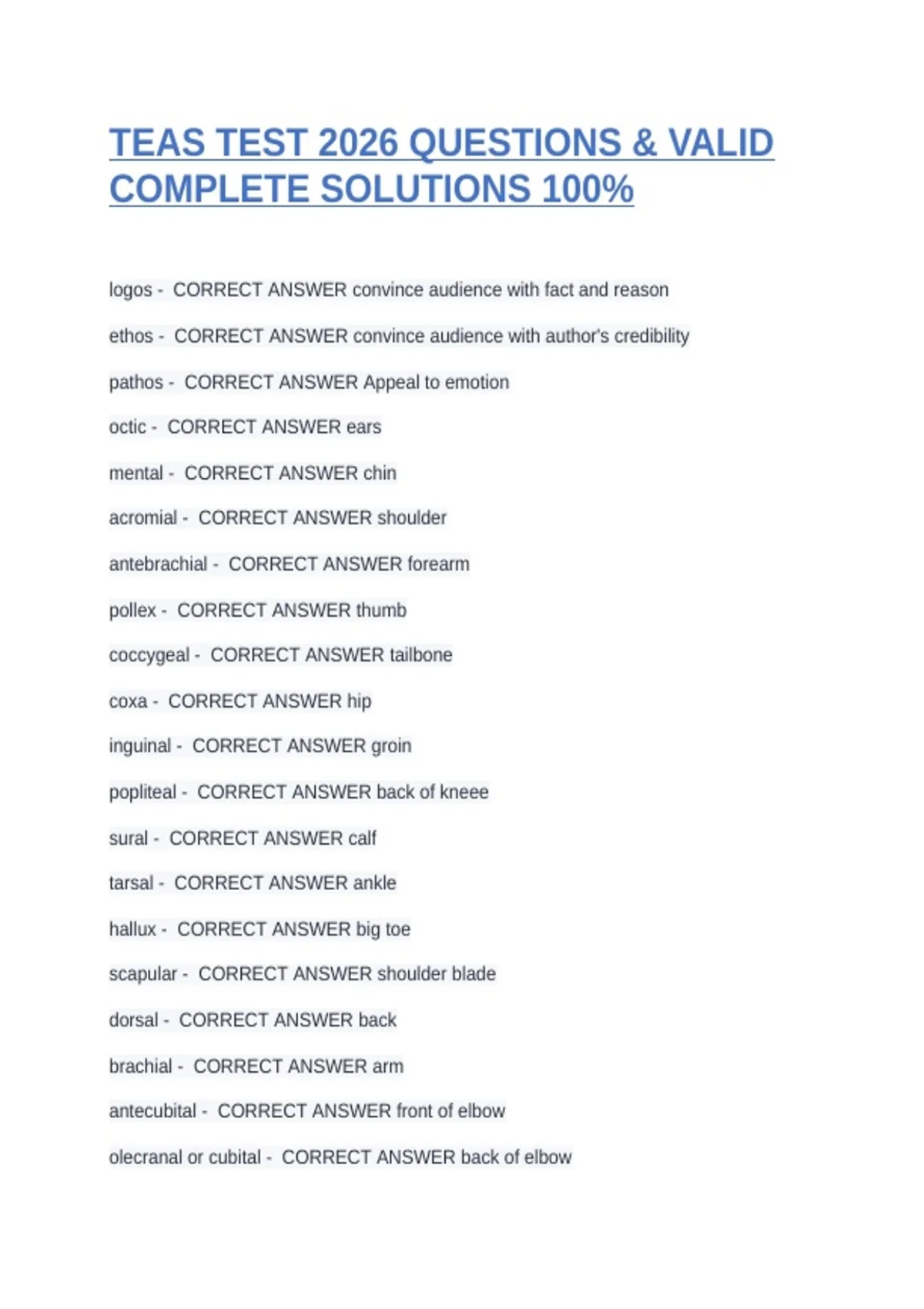 brachial - CORRECT ANSWER arm