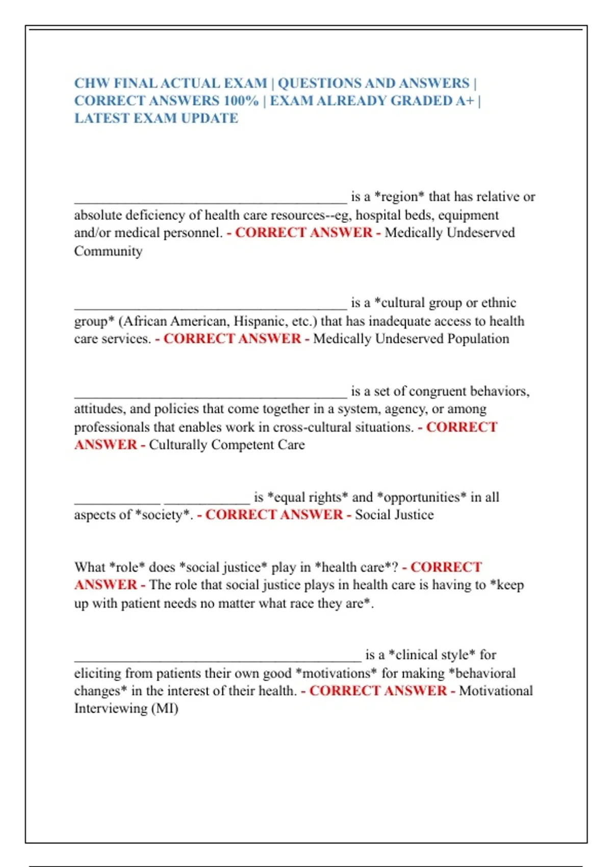 and/or medical personnel. - CORRECT ANSWER - Medically Undeserved
