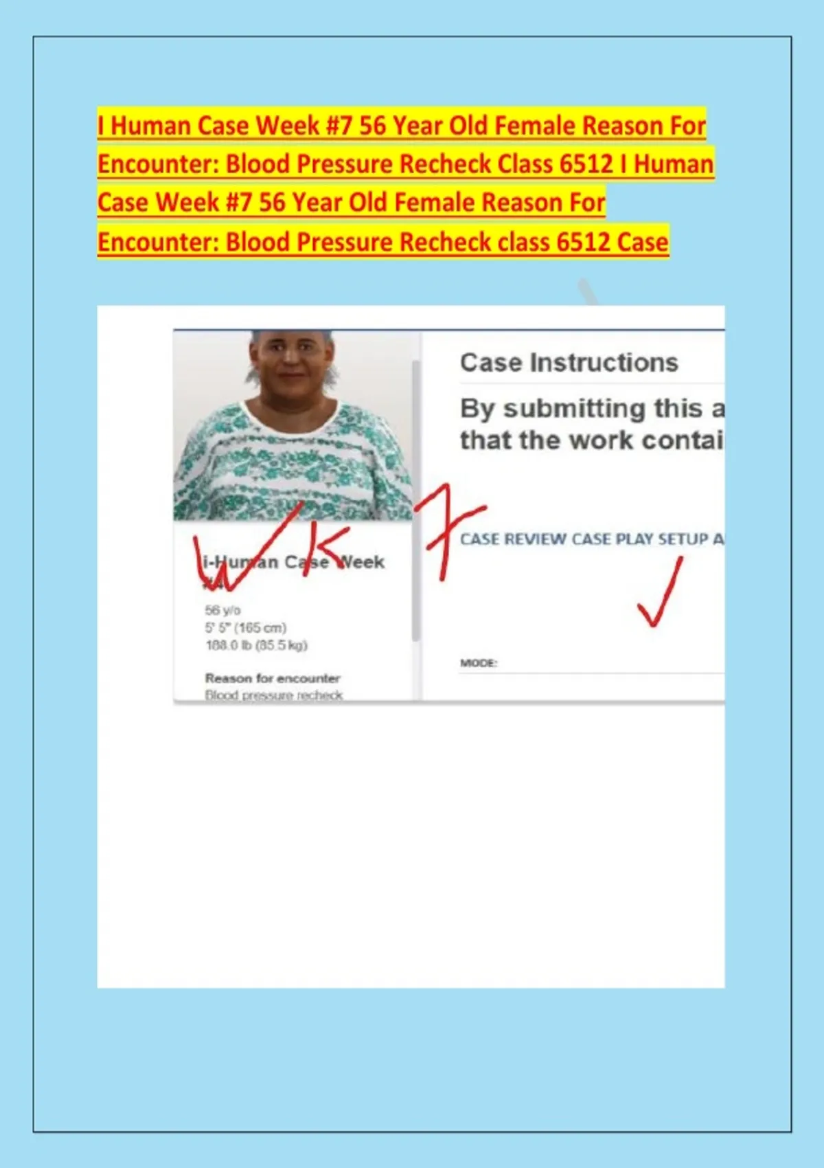 I Human Case Week #7 56 Year Old Female Reason For Encounter: Blood Pressure Recheck Class 6512 I Human Case Week #7 56 Year Old Female Reason For Encounter: Blood Pressure Recheck class 6512 Case