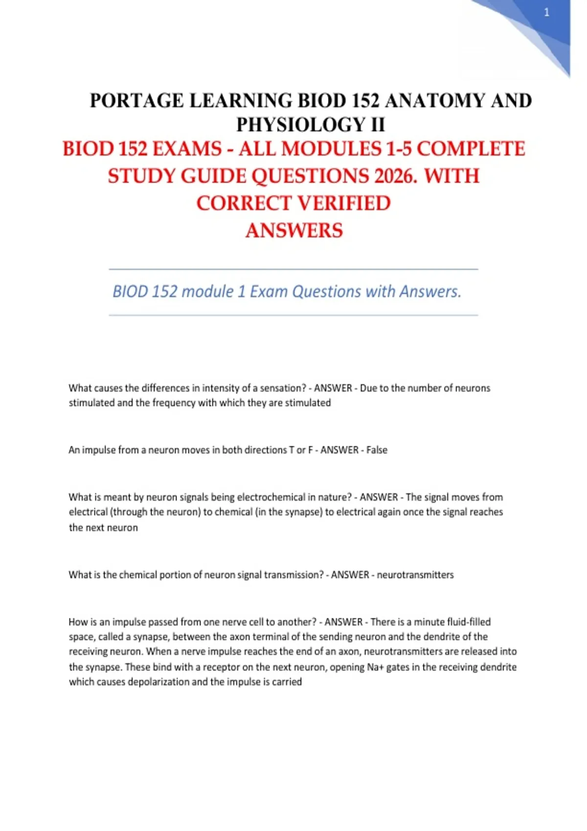 BIOD 152 EXAMS - ALL MODULES 1-5 COMPLETE