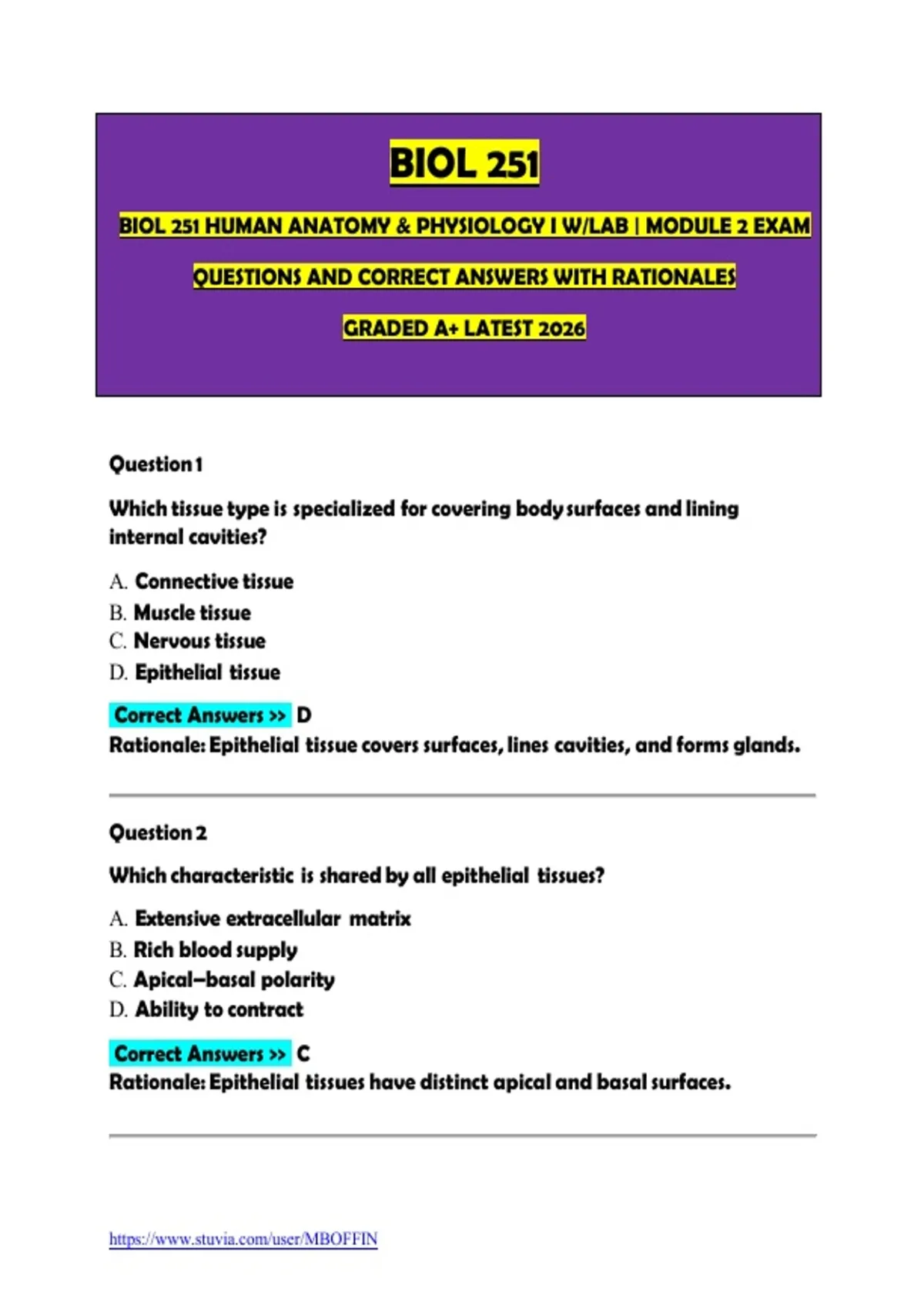 BIOL 251 HUMAN ANATOMY & PHYSIOLOGY I W/LAB | MODULE 2 EXAM