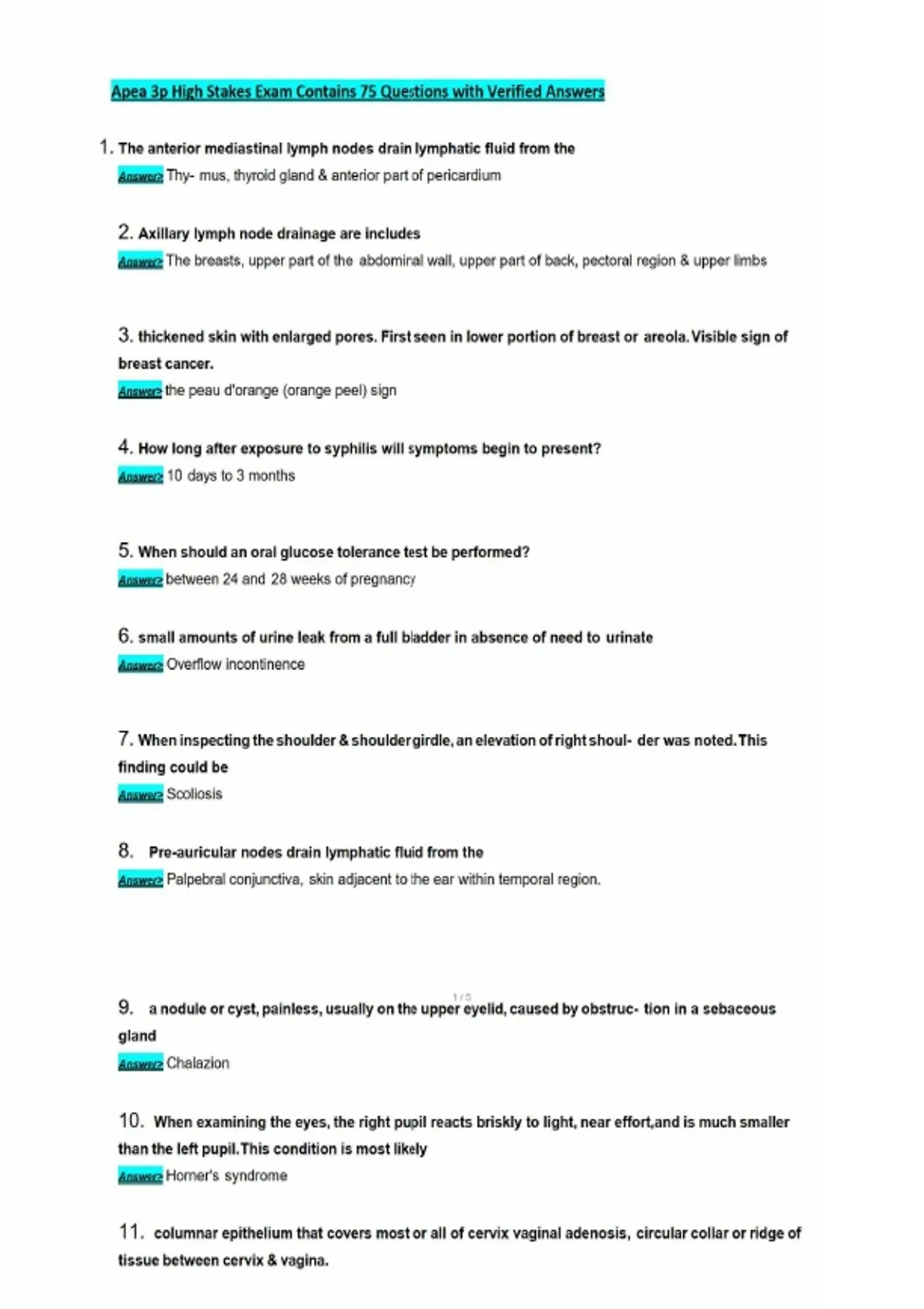 Apea 3p High Stakes Exam Contains 75 Questions with Verified Answers