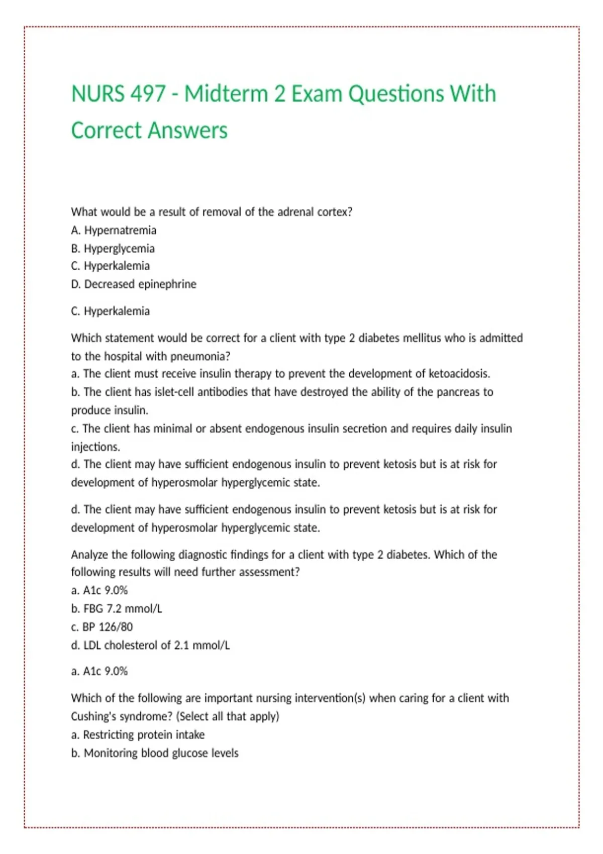NURS 497 - Midterm 2 Exam Questions With Correct Answers