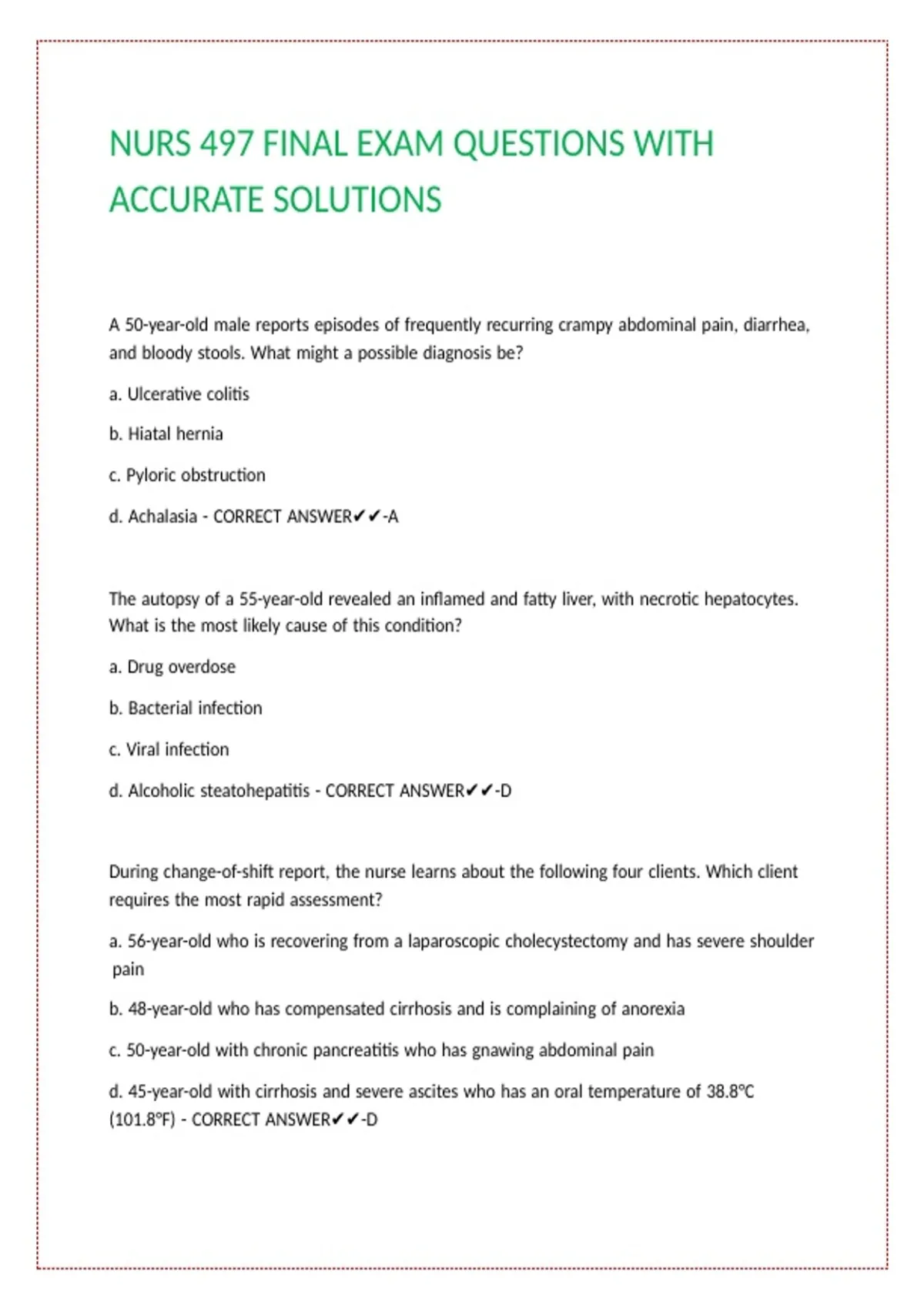 NURS 497 FINAL EXAM QUESTIONS WITH