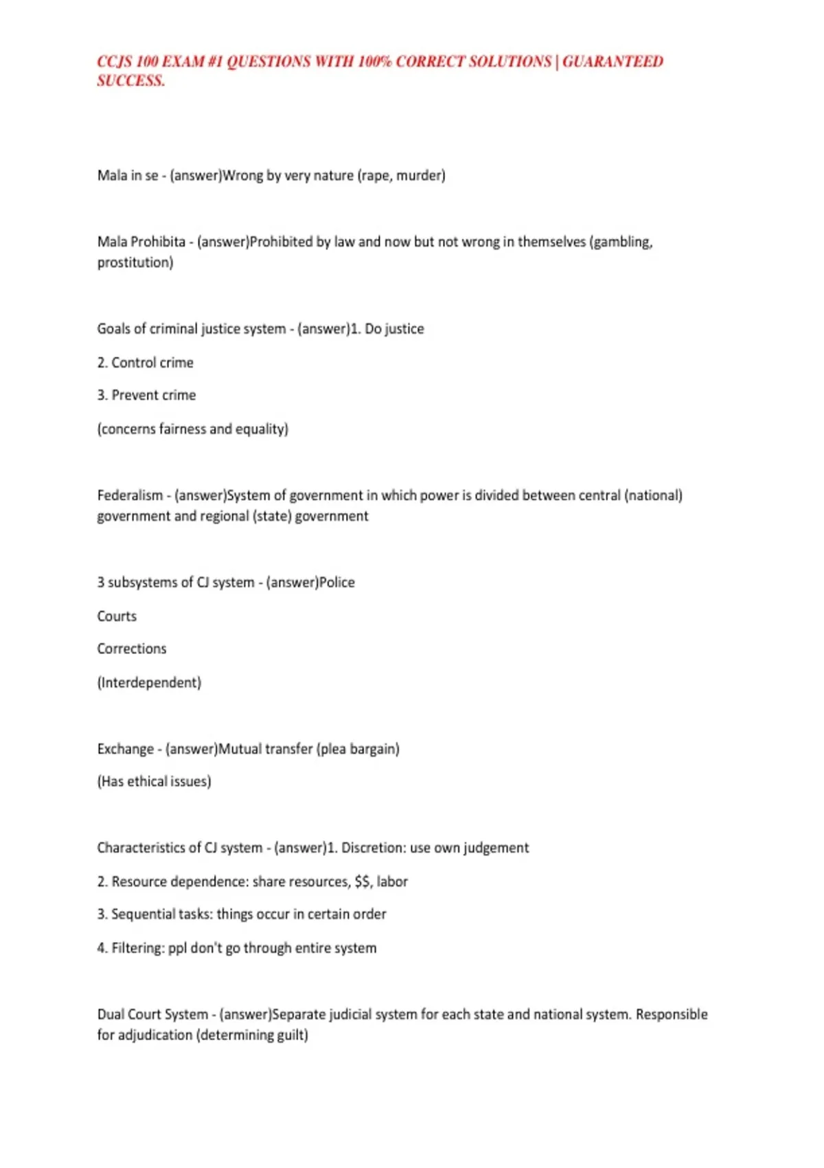 CCJS 100 EXAM #1 QUESTIONS WITH 100% CORRECT SOLUTIONS | GUARANTEED SUCCESS.